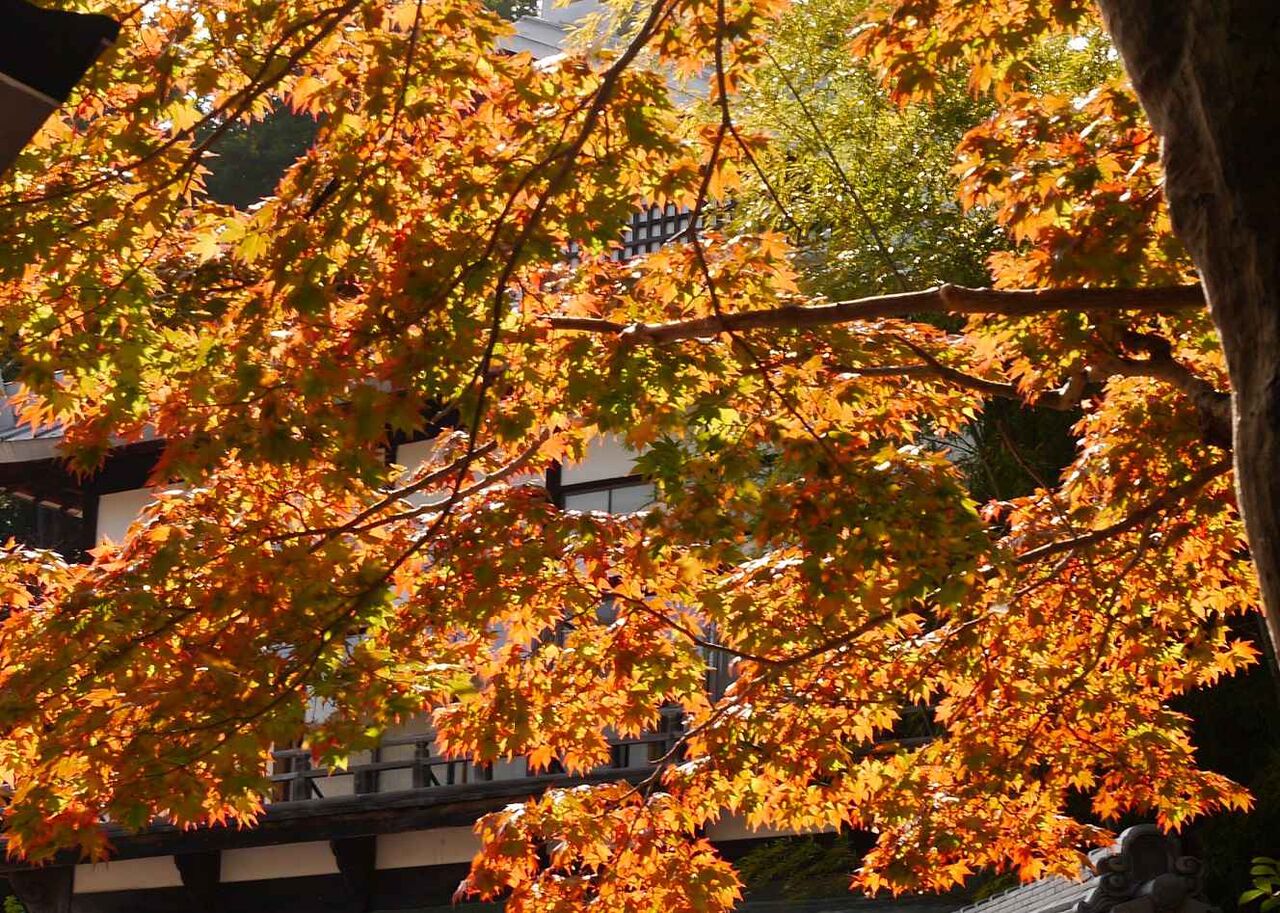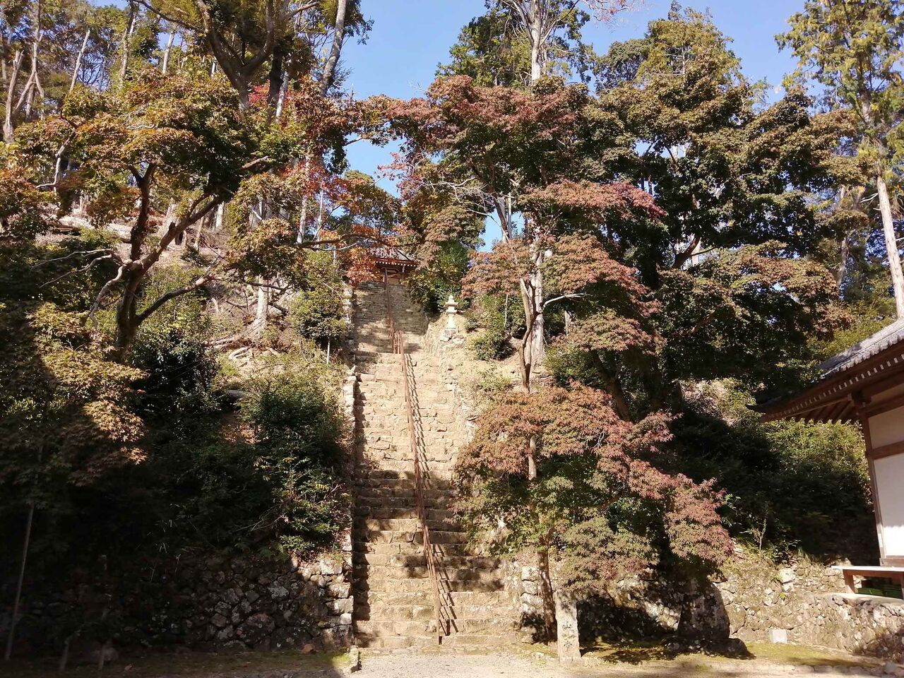 右手にある急な階段のお堂のところも色づいてきていました。葉っぱに直接光が当たるとなかなか見た感じに写りません。。