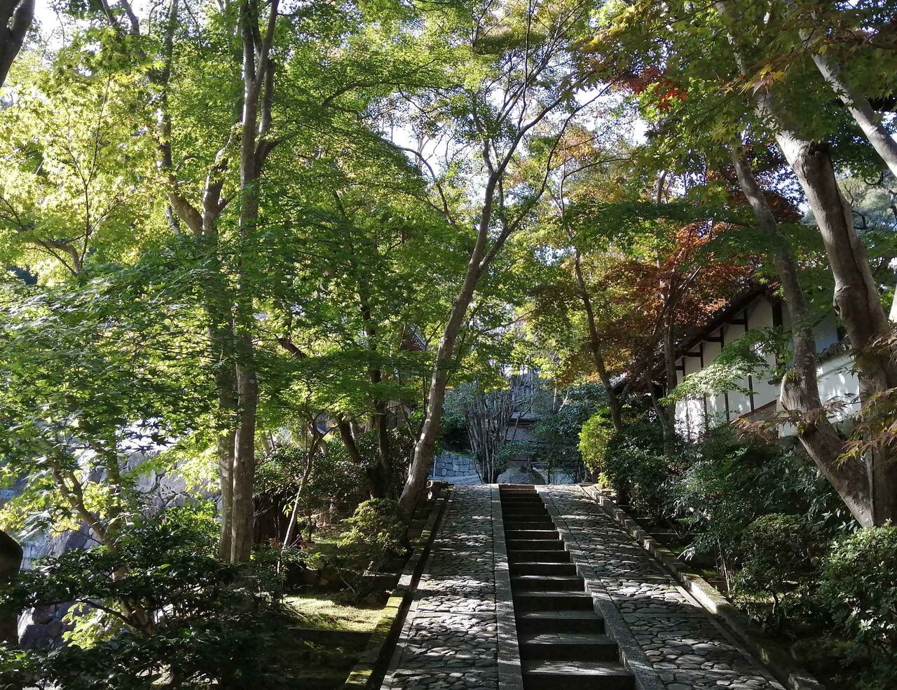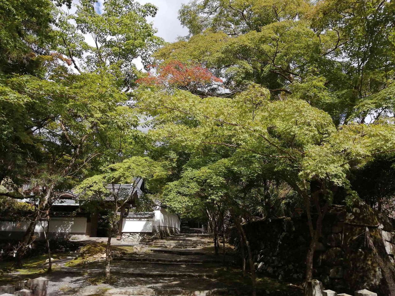 本堂の左手の回廊の下、紅葉のときにきれいな場所を眺めて帰りました。。紅葉の時もよいですが緑のあるこの時期もとても落ちついていてよいかんじでした。。