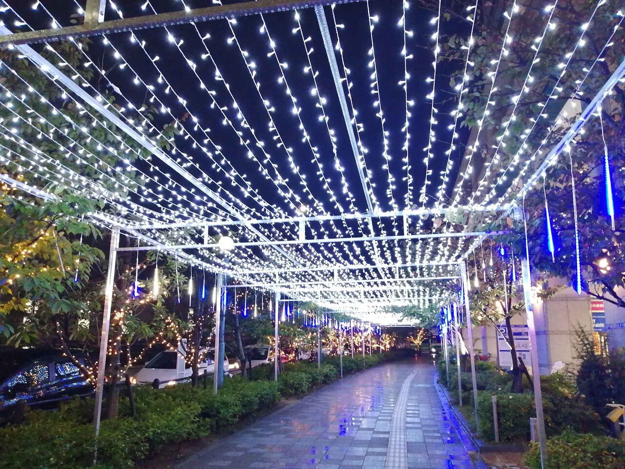 さらに左右に滝のように流れるイルミネーションもあり、今年はかなりバージョンアップしているようです。