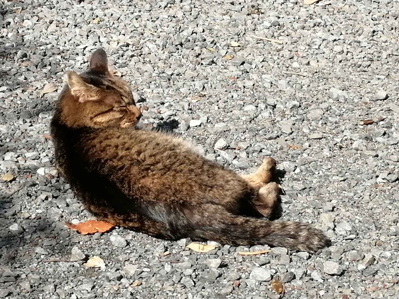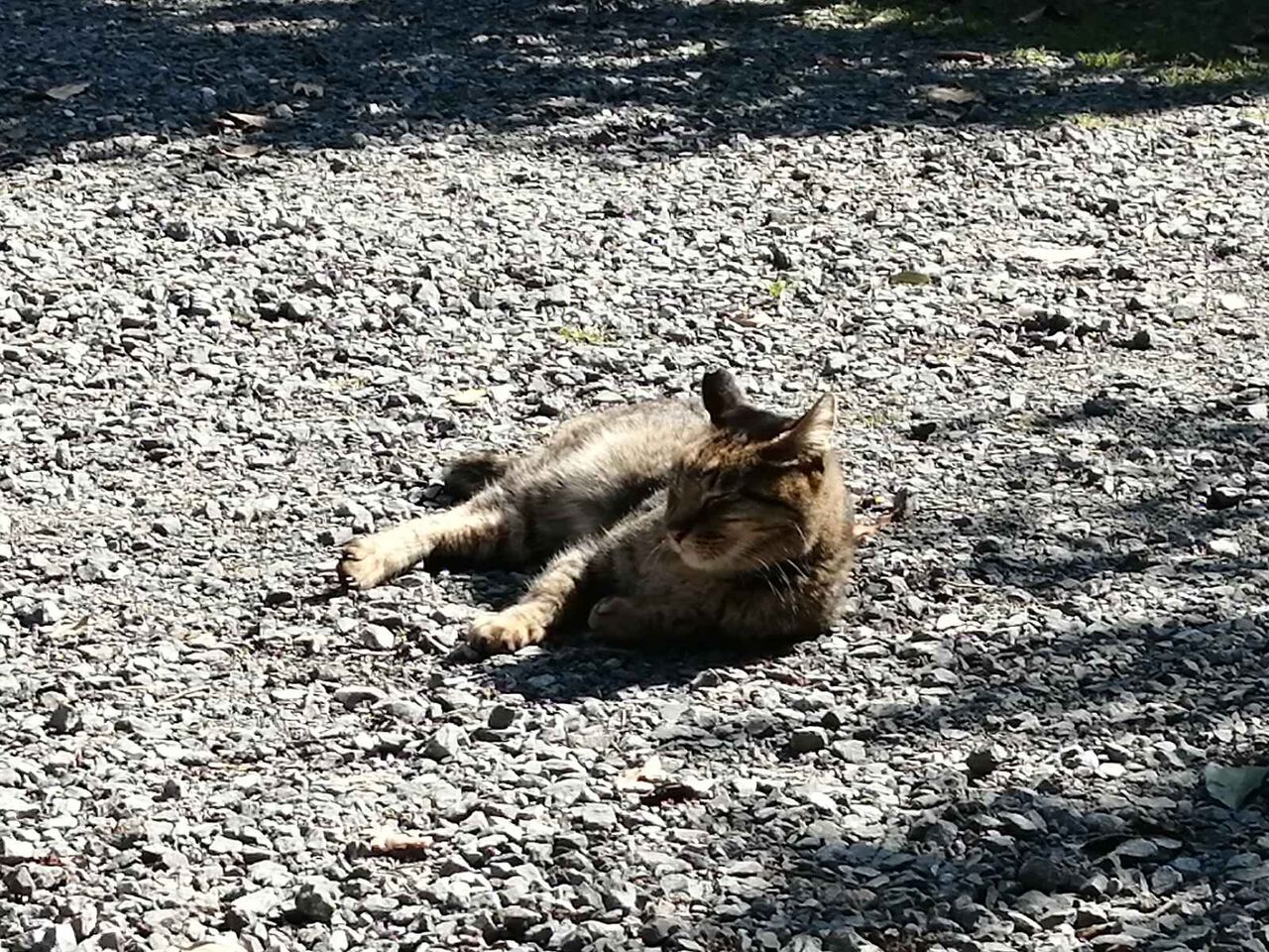 猫ちゃんはひなたぼっこで背を太陽にむけて微動だにしません。