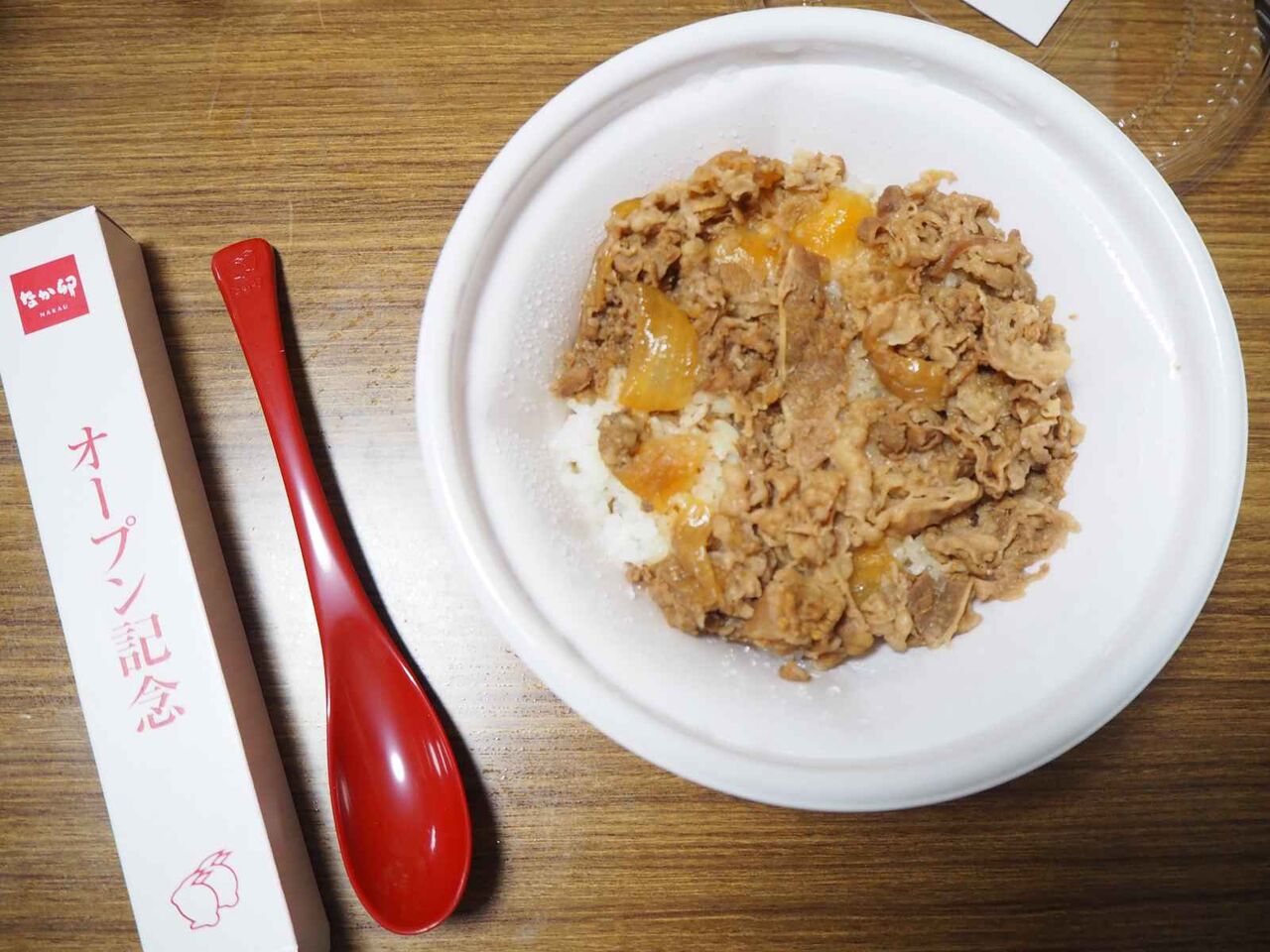 牛丼並盛のお弁当を購入しましたが、オープン記念でロゴ入りのスプーンをもらいました。