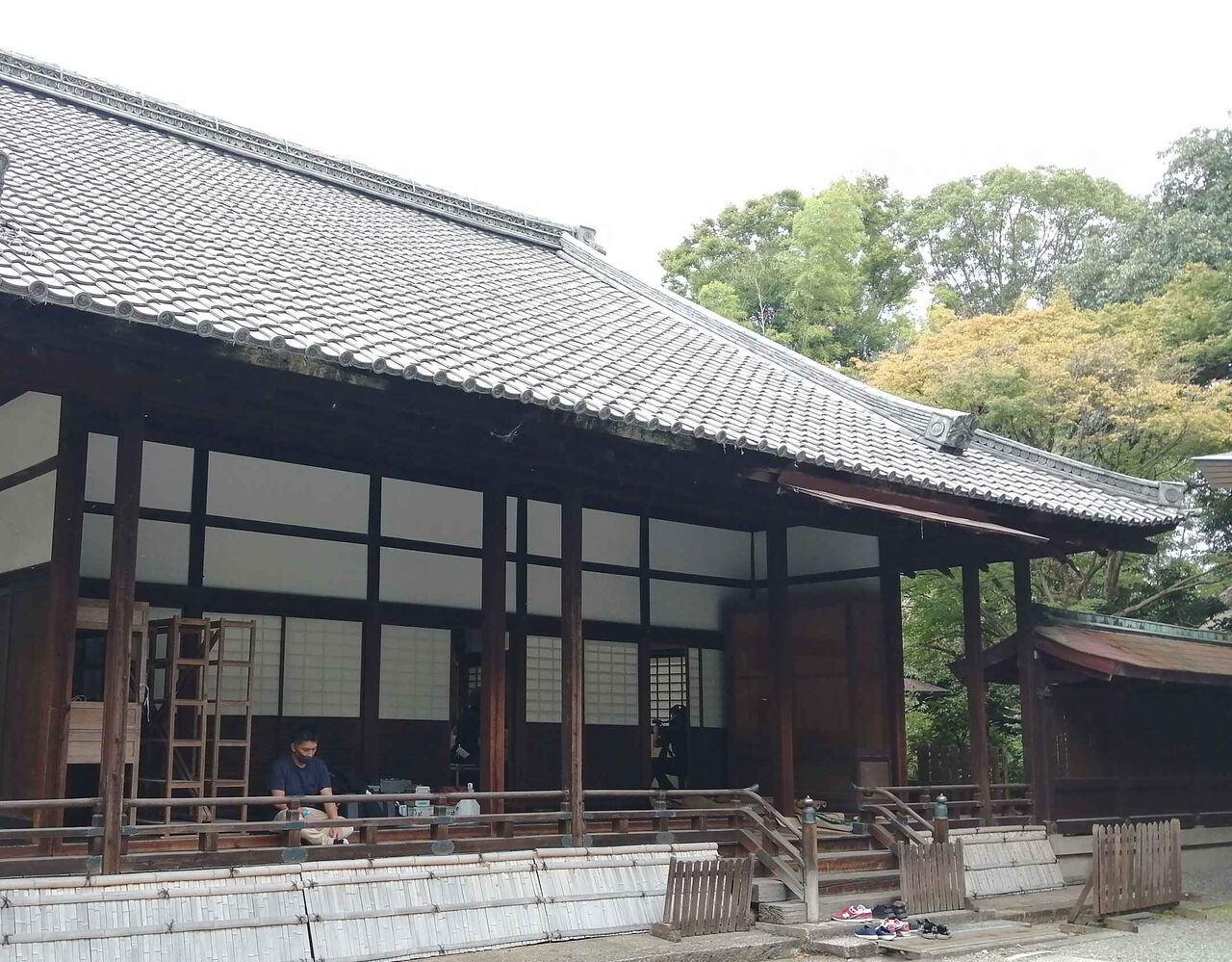 客殿の障子があいていたのでわずかに撮影の様子が見えました。