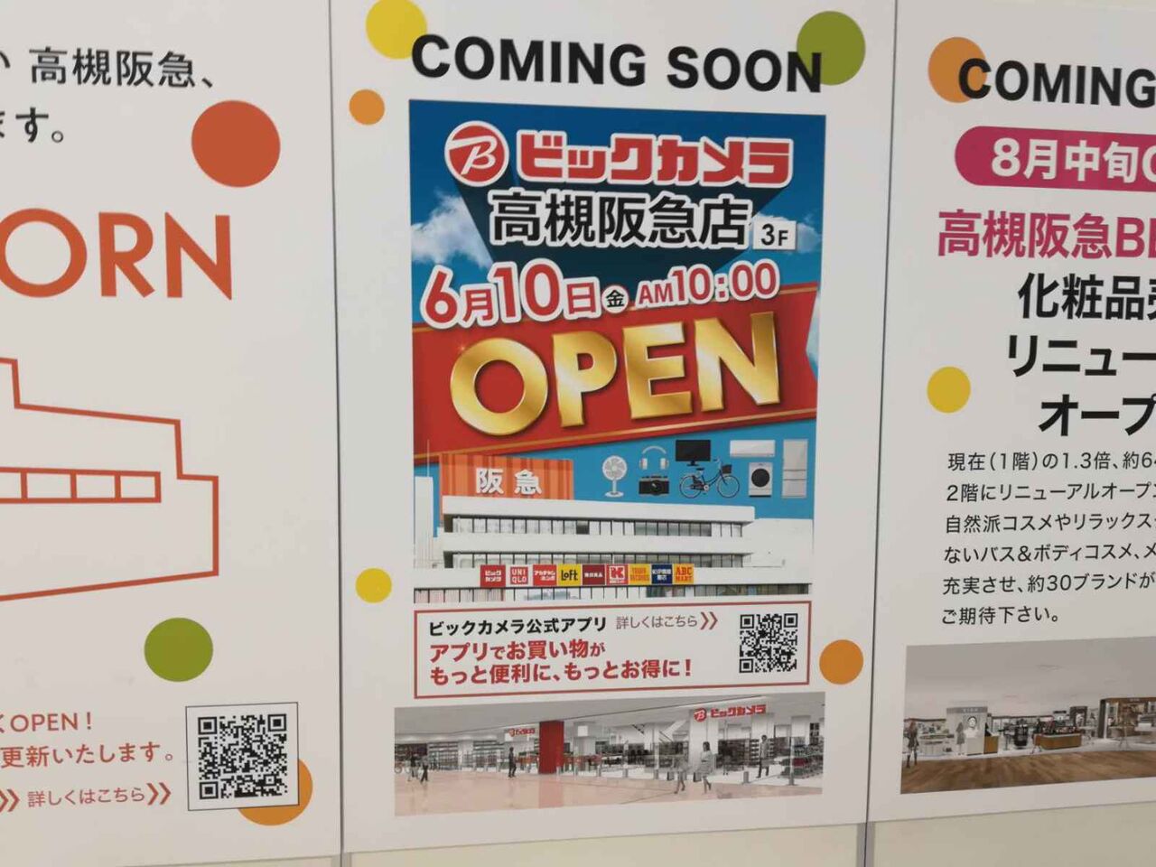 前回の投稿に追記です。高槻阪急3階 今日6月10日(金)10時にビックカメラが開店予定です。