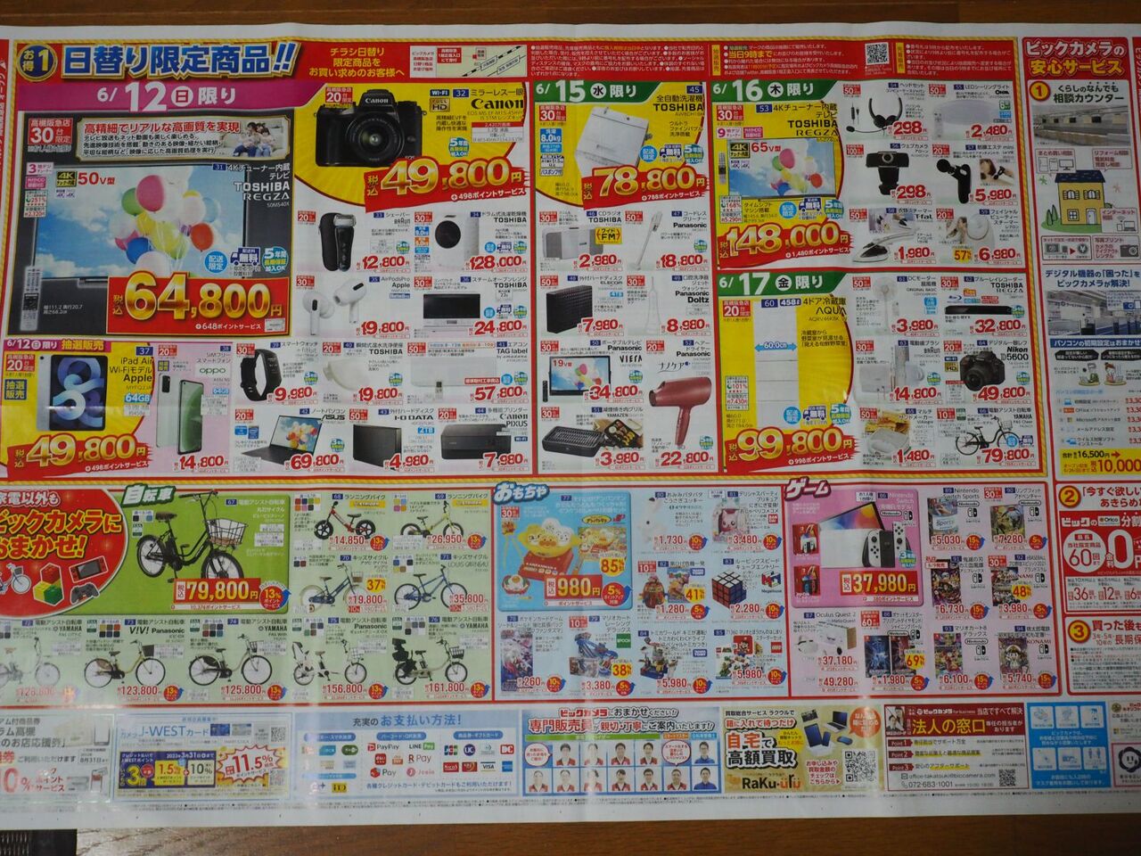 チラシの裏側↑ JR高槻駅周辺では北側に電器店がないため、高槻阪急に行く機会が増えそうです。