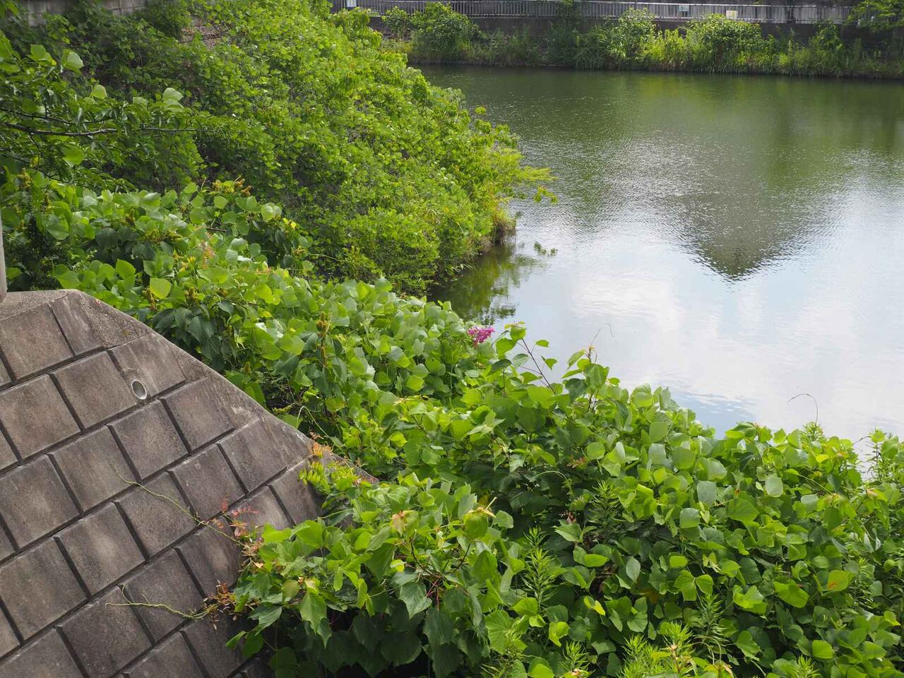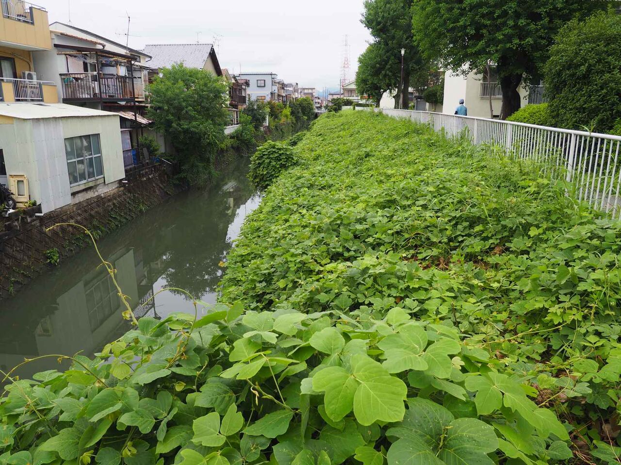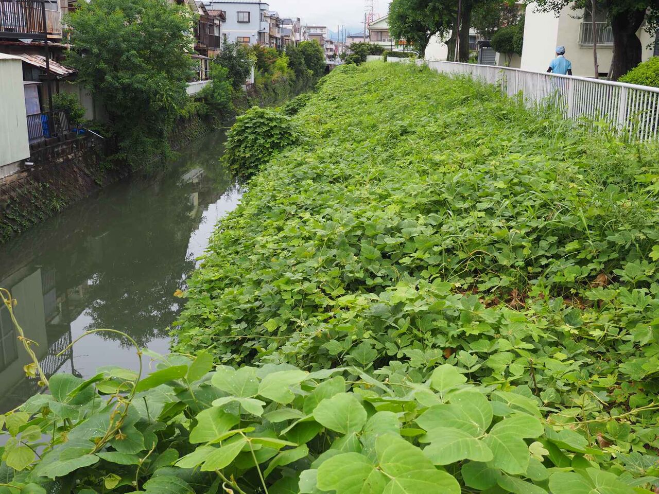 芥川沿いに行ってみます。この両岸、ほとんどがクズの葉っぱです。