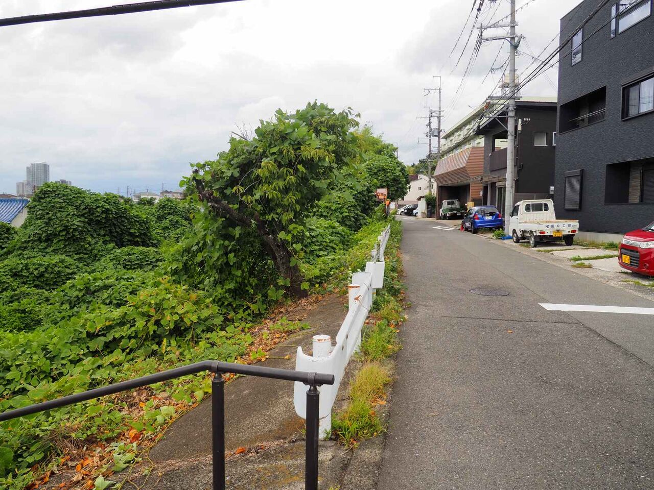 その檜尾川をこえる手前の道路沿いの斜面です。
