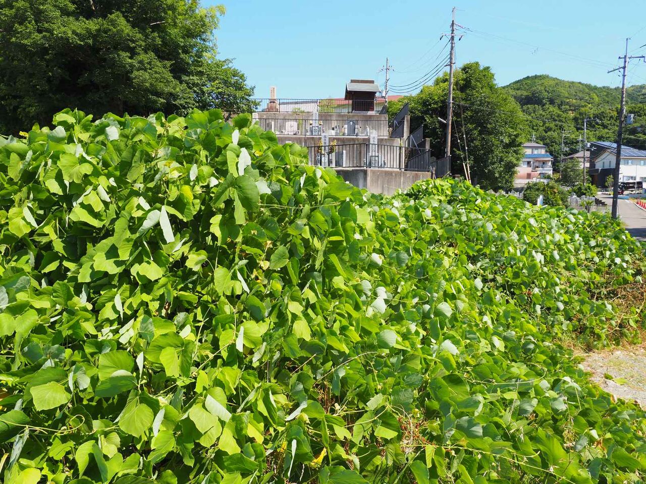 広角で見るとこのよう(拡大できます)。ずっとクズです。今年もクズが各地で広がっているようです。