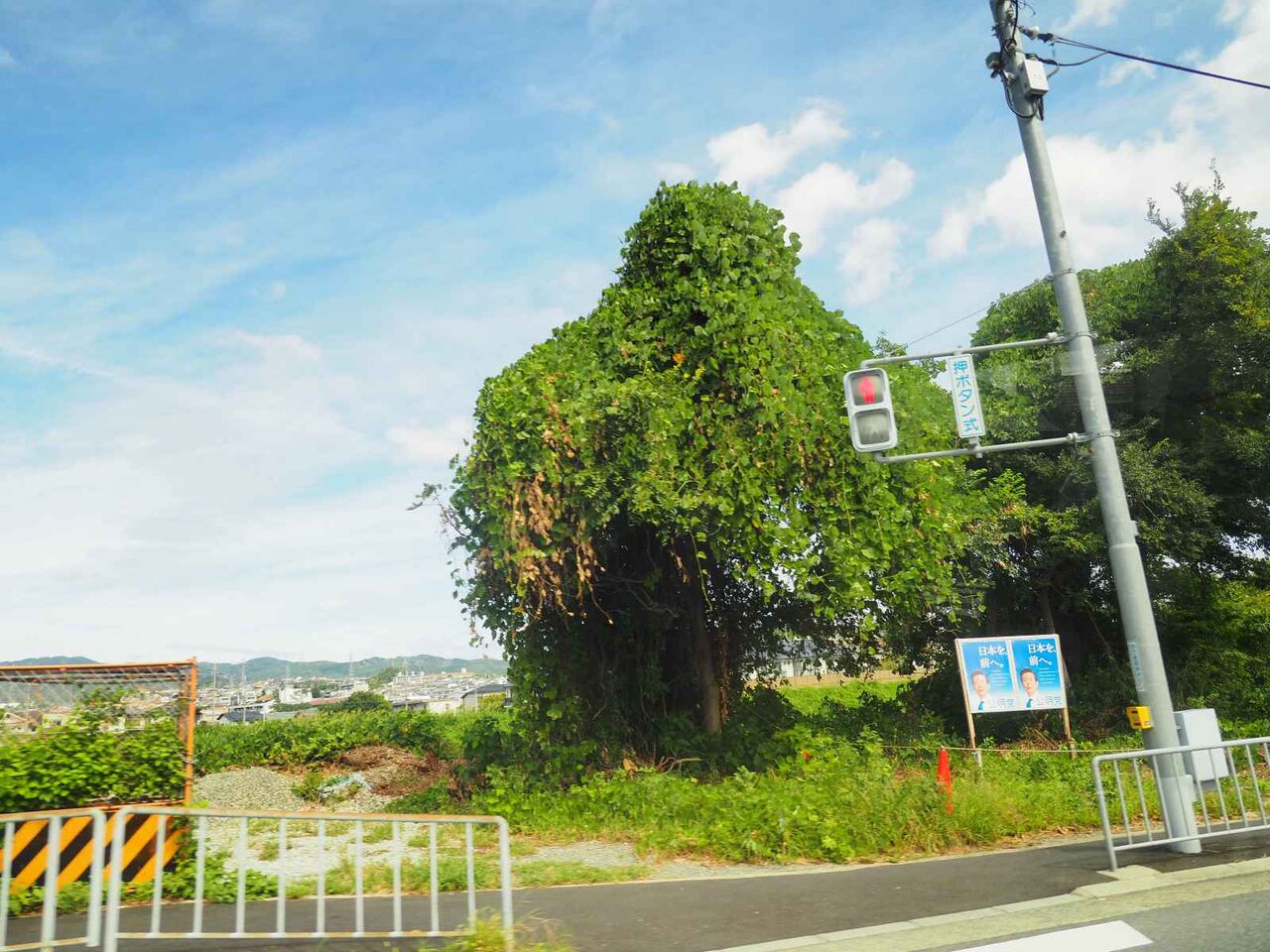 高槻のクズとしまして、郡家本町芥川近くに、今年も怪獣?ゴジラ?のようになってるようすを追記します 2024年7月7日