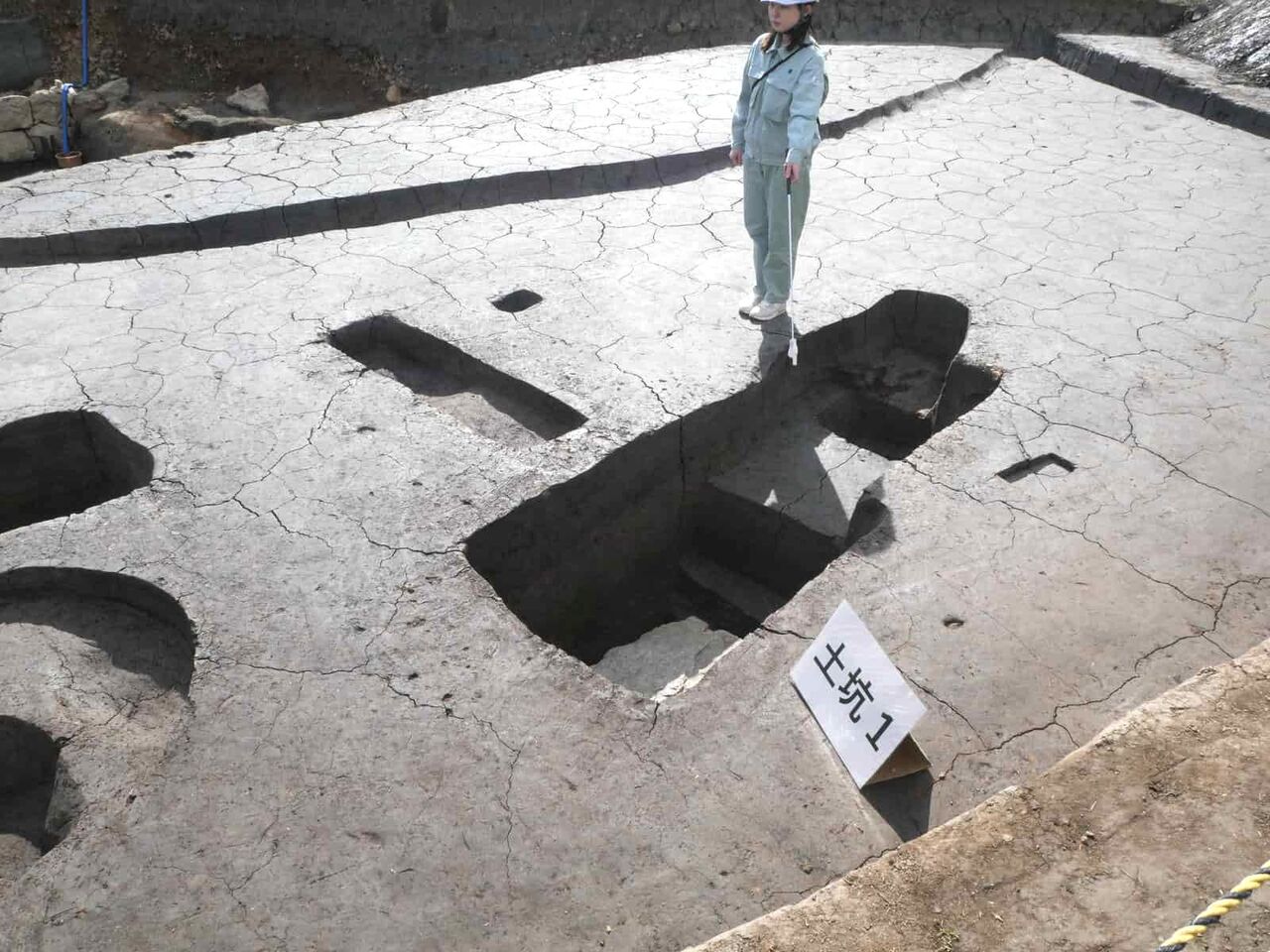 手前(西側)には土杭というのが発見されています。この中には石(基礎)があり、何かの構造物があったと思われます