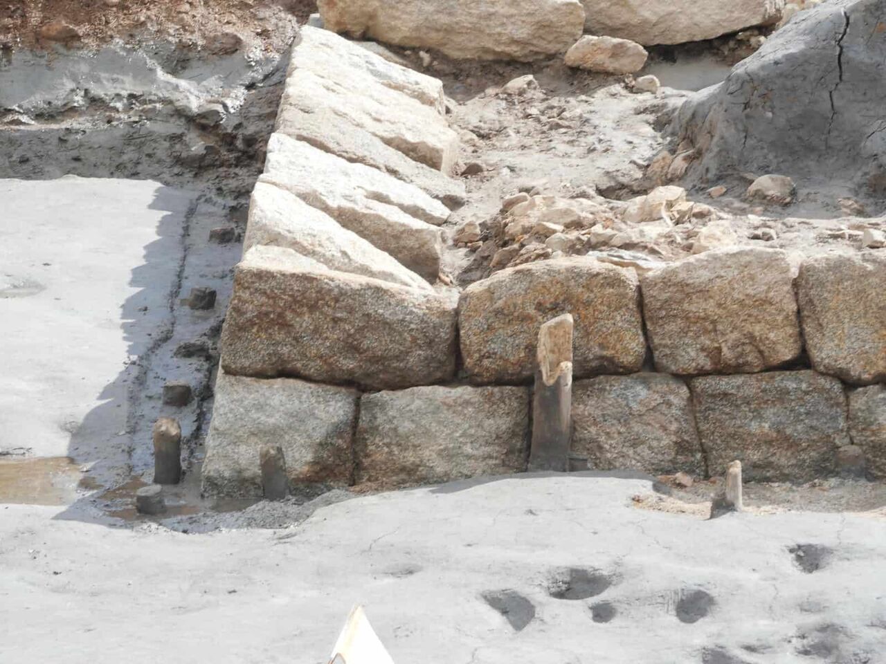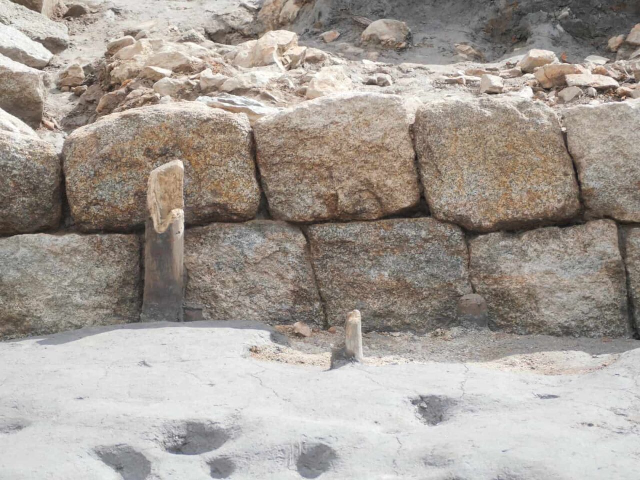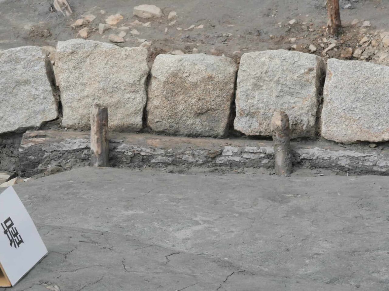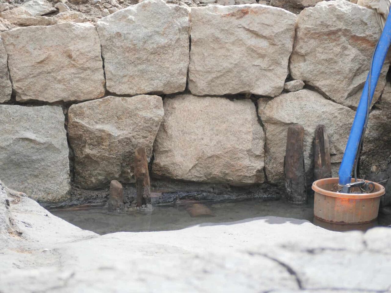 こちらにも胴木といわれる木材が垂直方向に敷かれています。