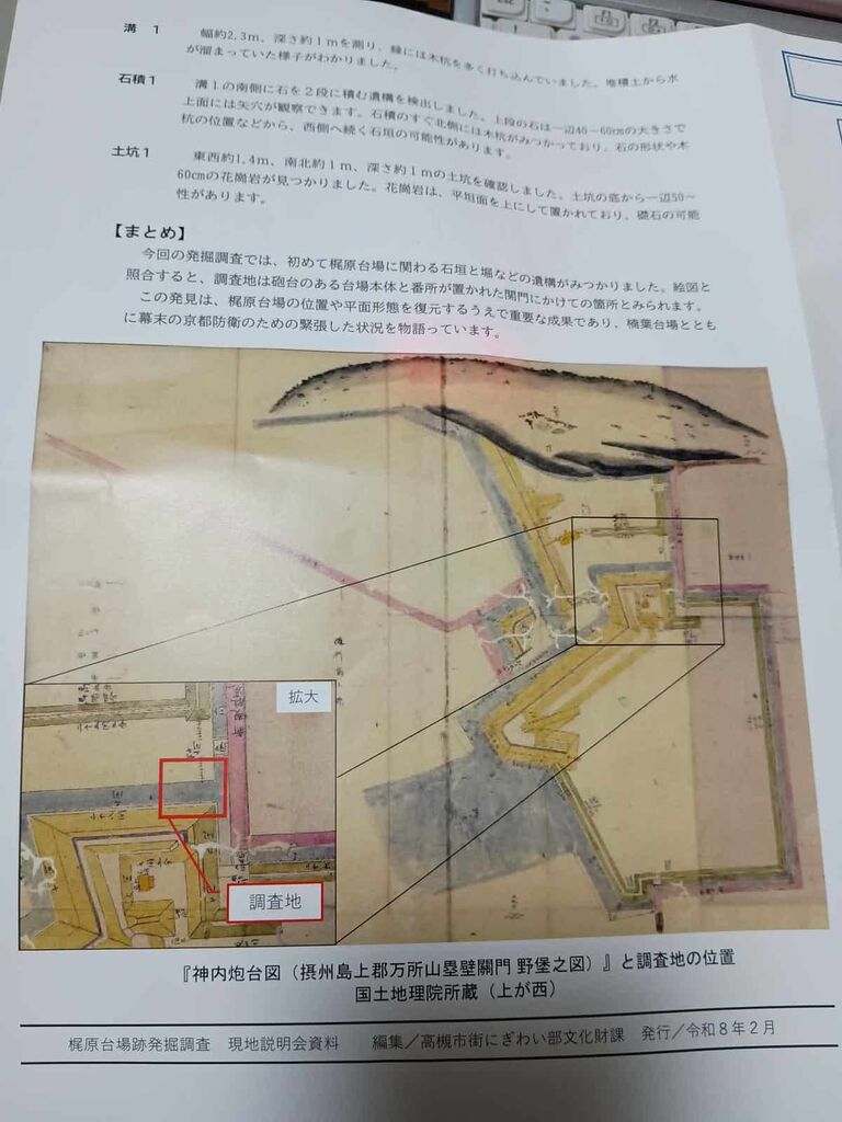 ◆今日25日に【梶原台場跡】発掘調査の正式発表がなされたようです。 2026年2月