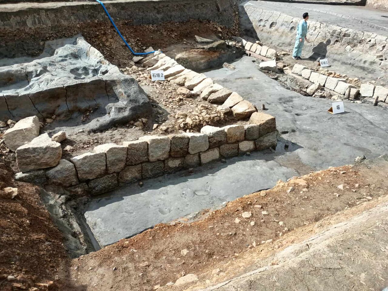掘の北側。こちらは石が1段しか残っていなかったようですが、よく見ると