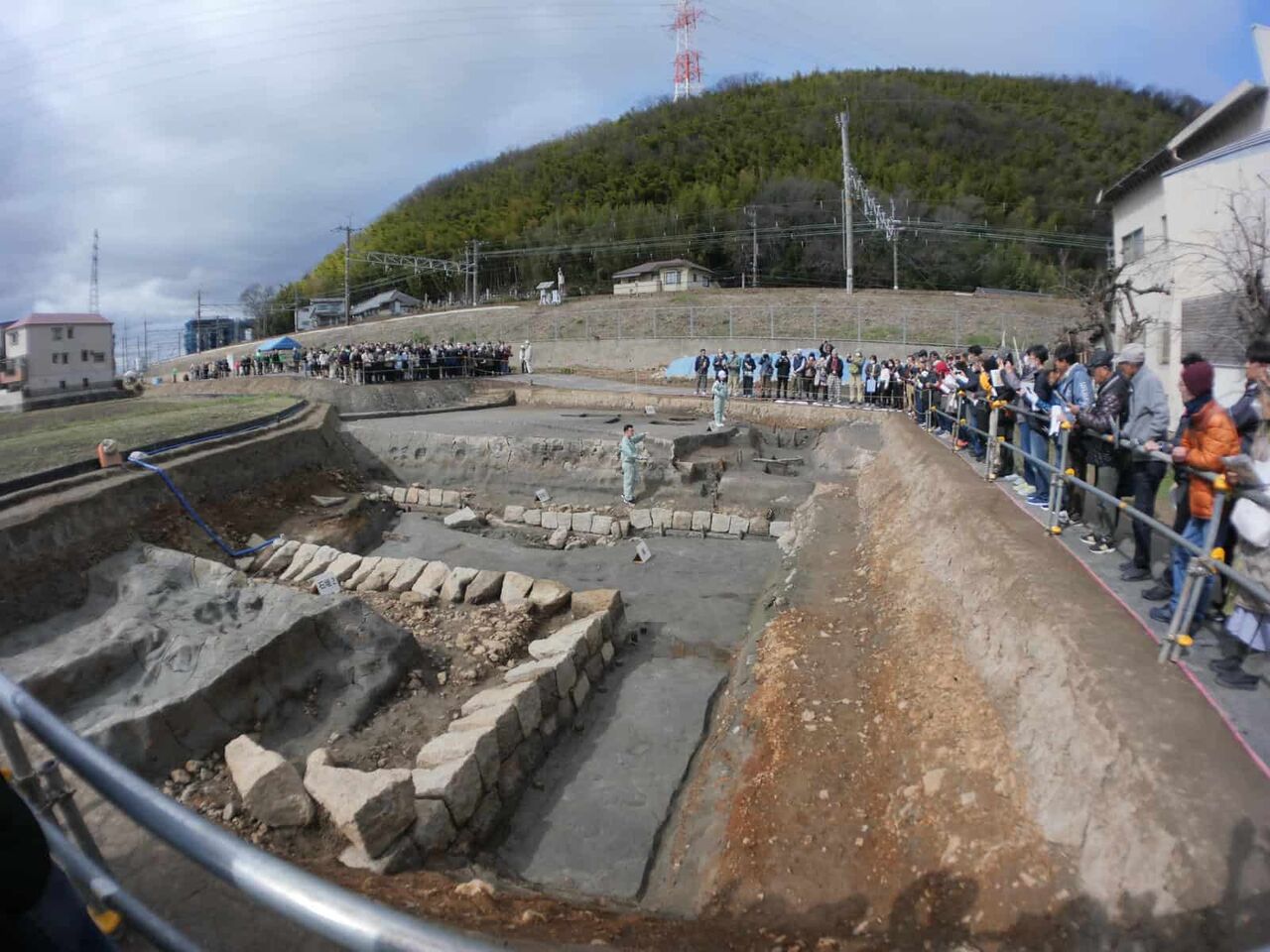 JR沿いのほうはすでに調査されていて、さらにその西側、堀があったとされる場所の調査もされているようです。以下訂正です。今後発掘調査発表については現在未定で報道機関への発表があるようです。