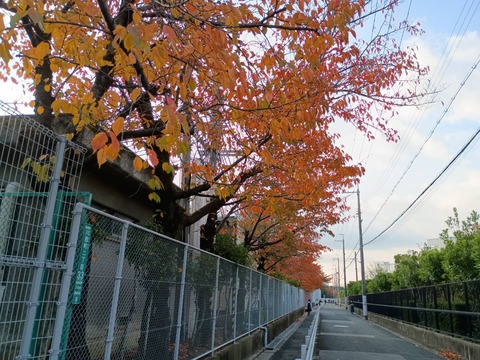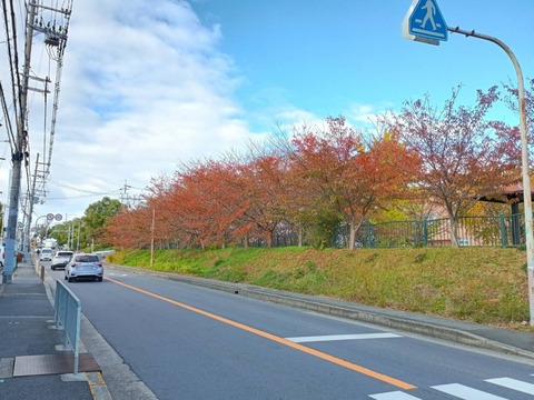 高槻の紅葉 川西中学校前のようす 2025年11月17日