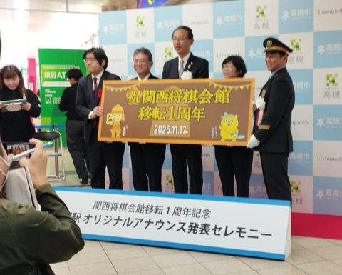 関西将棋会館移転1周年 JR高槻駅でオリジナルアナウンス発表セレモニーがあった 2025年