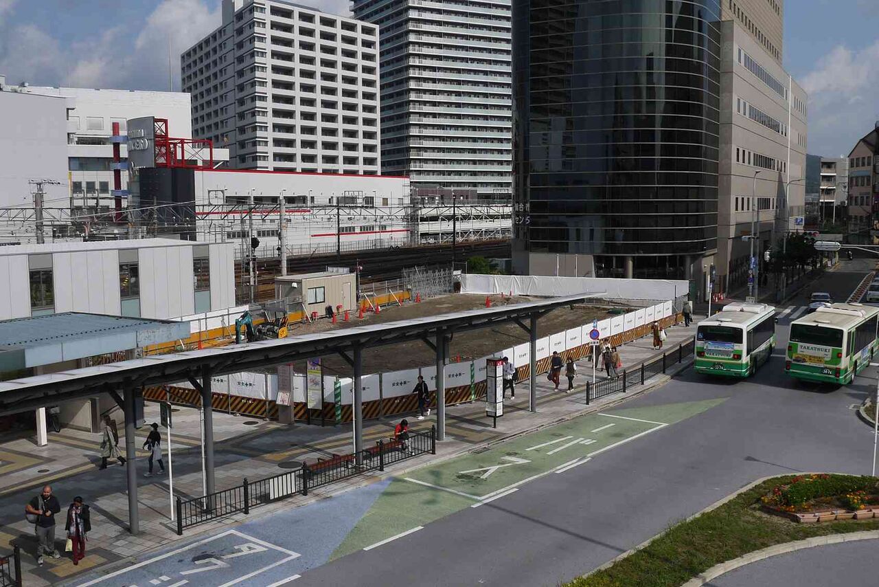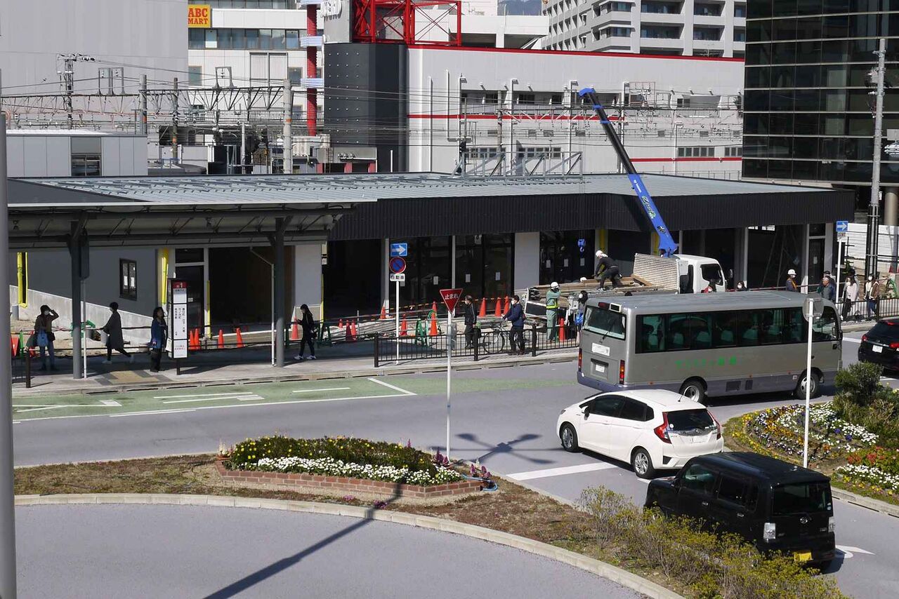 JR高槻駅の南側 クロスパルとの間の飲食店(予定)の建物の外観が見えてきました。