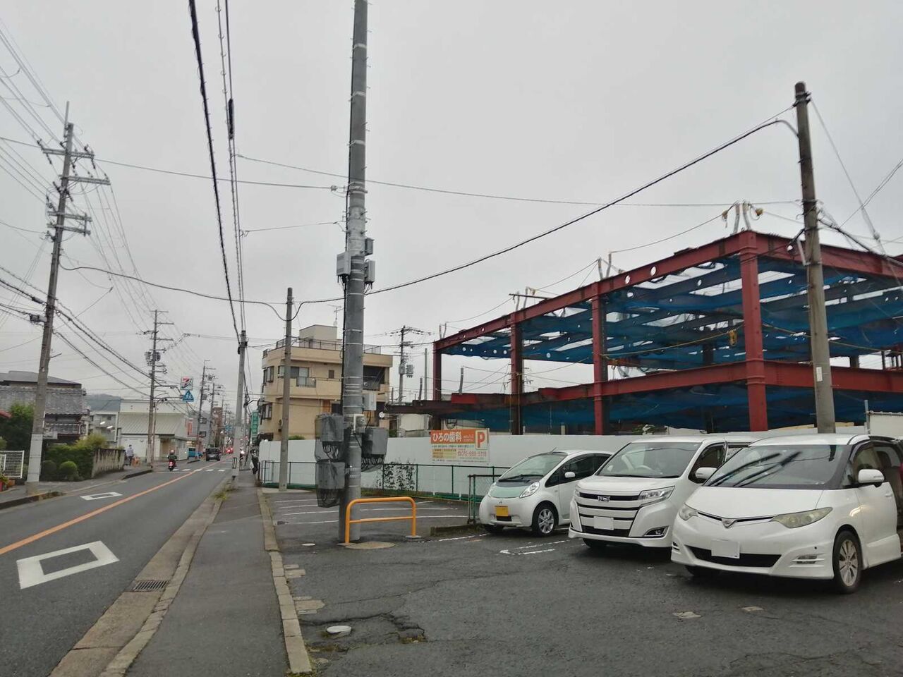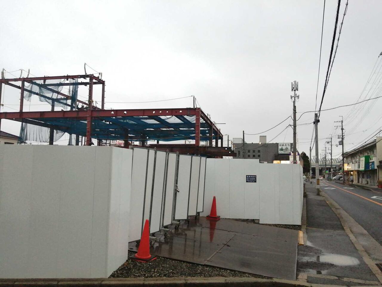 数日かけて鉄骨の外郭を作られていました。(写真は17日時点 そのあと18日には外観が囲われてきました)