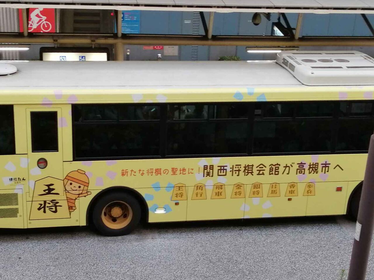 2021年08月11日 「〇〇のまち高槻市」関西将棋会館PRバスを見かけた 関西将棋会館PRのラッピングバスを見かけたました。といいますか見かけるんですがなかなか写真に撮れませんでした。たまたまアルプラザからJR高槻の駅に渡る通路からバスターミナルを見ると原大橋行きで停車していました。背後には「〇〇のまち 高槻市」というクイズになっています。答えは側面にあり、新たな将棋の聖地にということで、関西将棋会館が高槻市の旧西口のターミナルに来ることをPRしています。〇〇はこの側面で推測ください。▶関西将棋会館が高槻市に移転する計画があるらしい 高槻が将棋の西の聖地になる!? 追記▶高槻市議会 2021年3月議会の議案提案説明があった 市政のポイントは?予算案は?ワクチンは? 2021年3月 「ニュース」カテゴリの最新記事 タグ :#関西将棋会館#PRバス < 前の記事次の記事 > コメント コメントフォーム 名前 コメント 評価する リセット リセット 顔 星 投稿する 情報を記憶