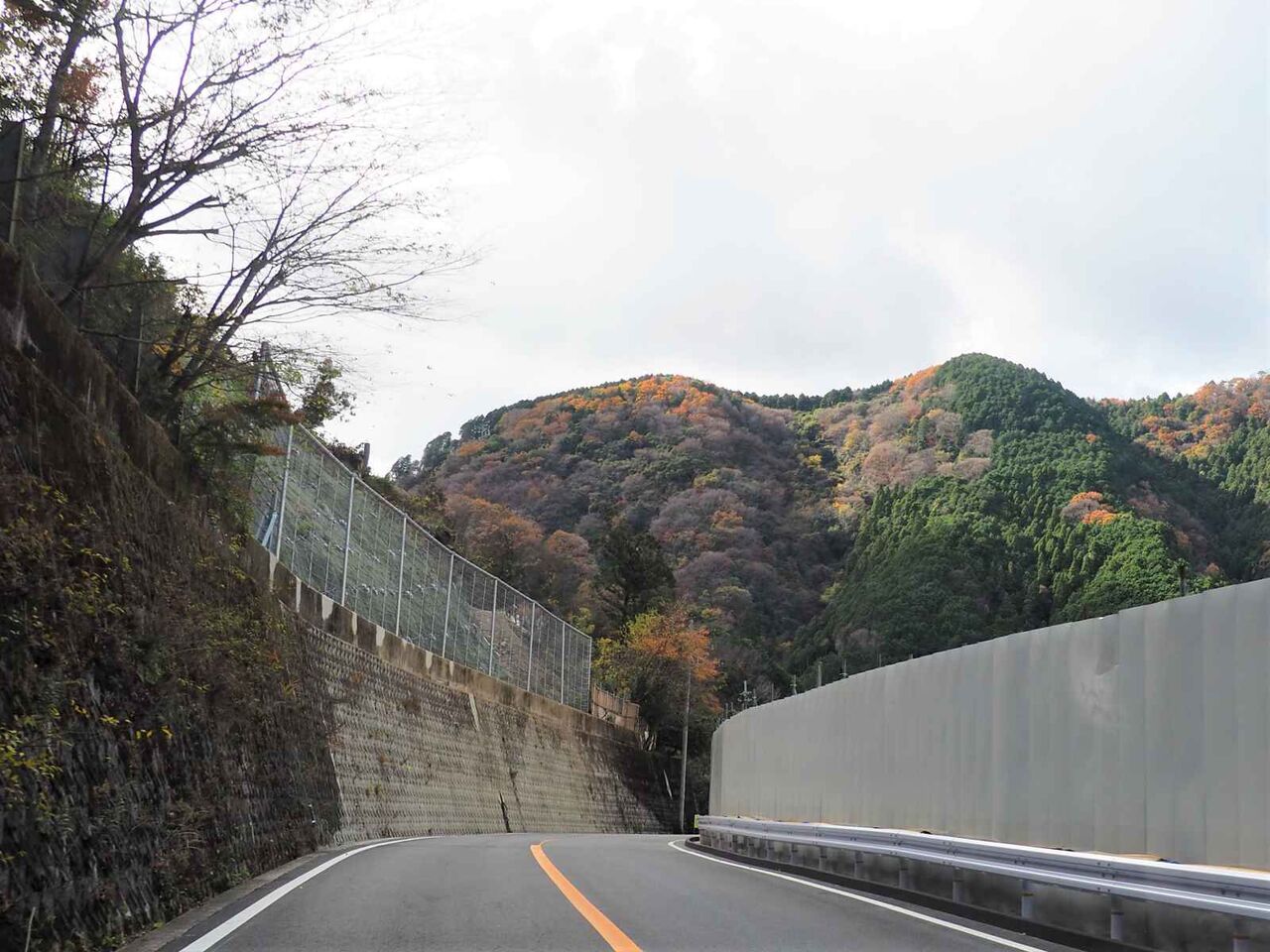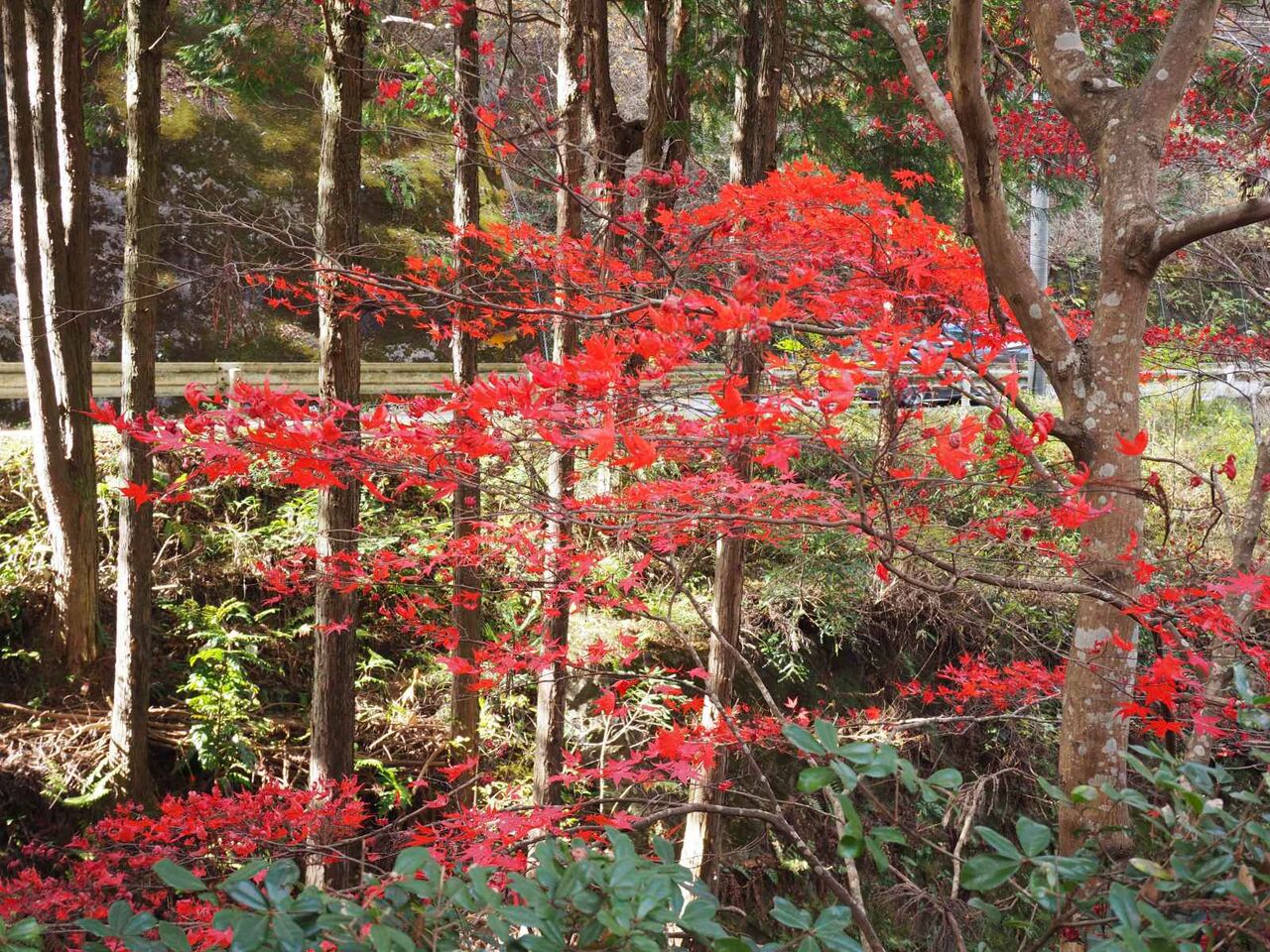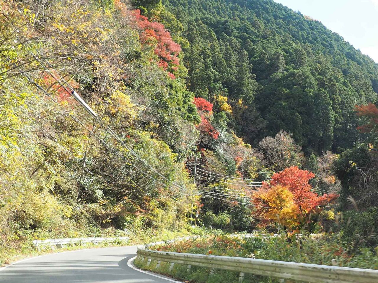 つるが谷と空谷橋の間です。ここは山肌に広葉樹があって紅葉が見えるのですが、ほとんど落葉してしまっているようです。