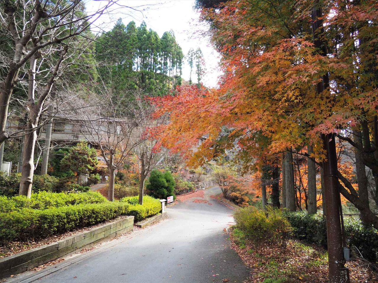 このほか写真にはないのですが、上ノ口バス停(往路)近くの府道に張り出すもみじもきれいです。