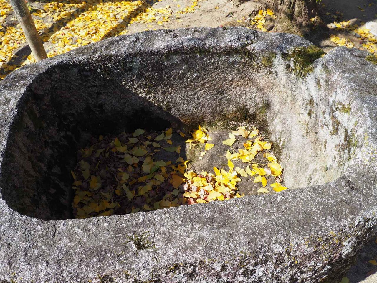 石槽にも落ち葉が