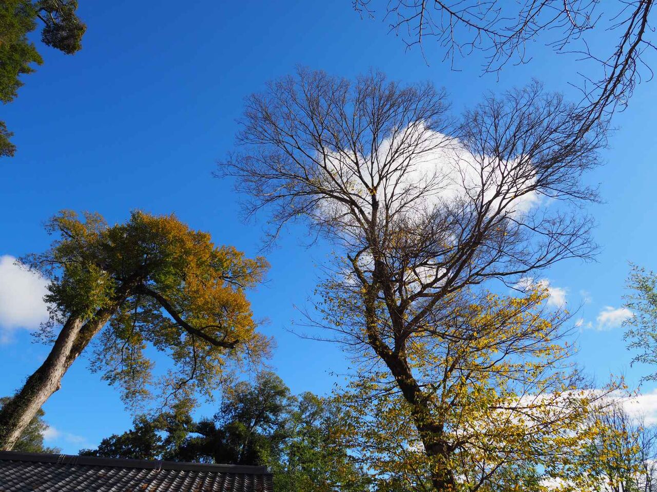 境内にある大きな木が3本あるのですが、このような色になっていました。