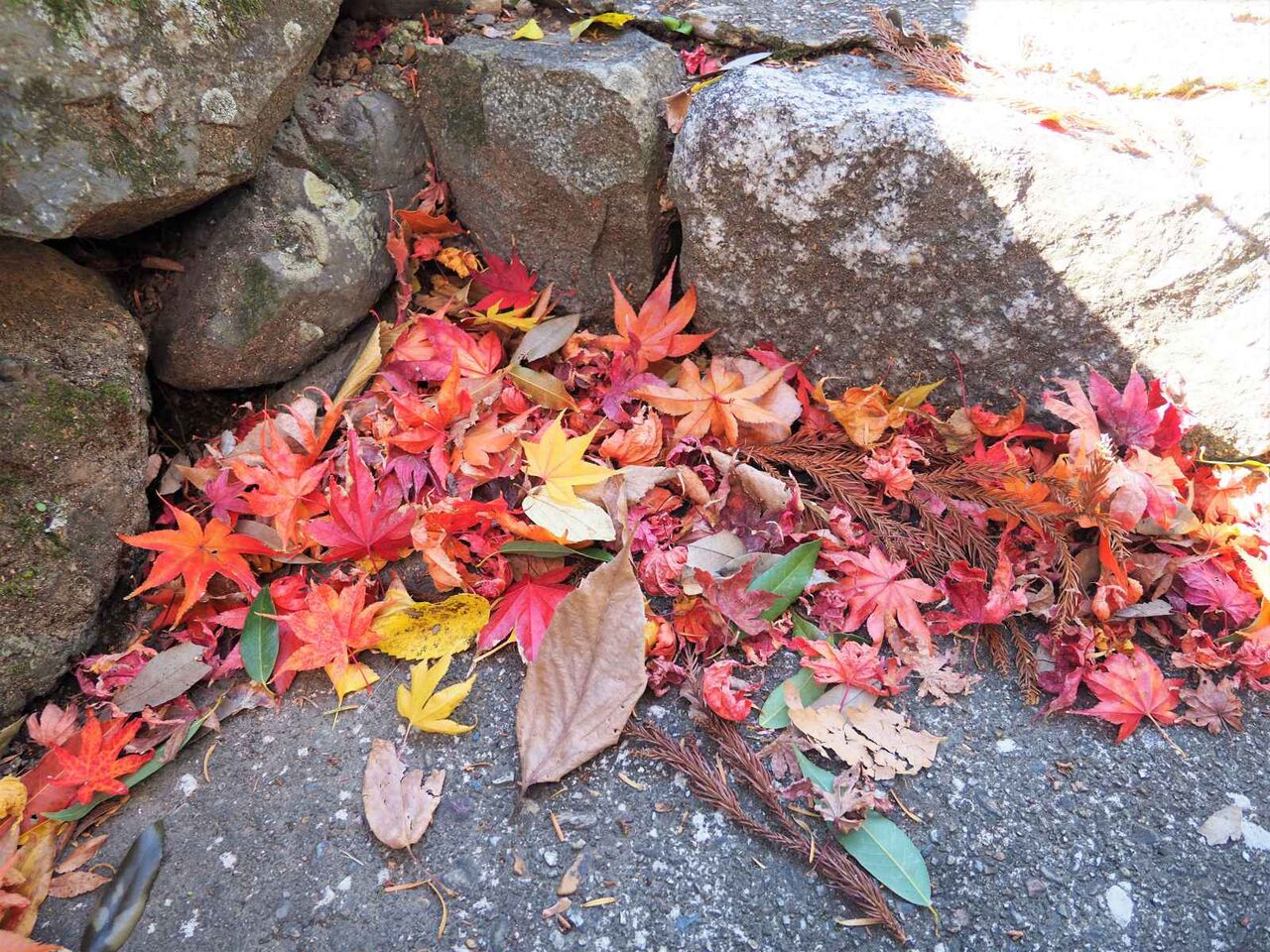 紅葉の葉っぱがたくさん落ちていました。