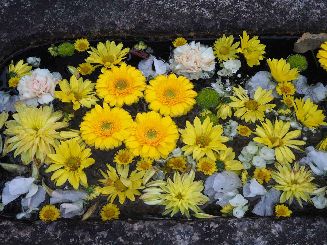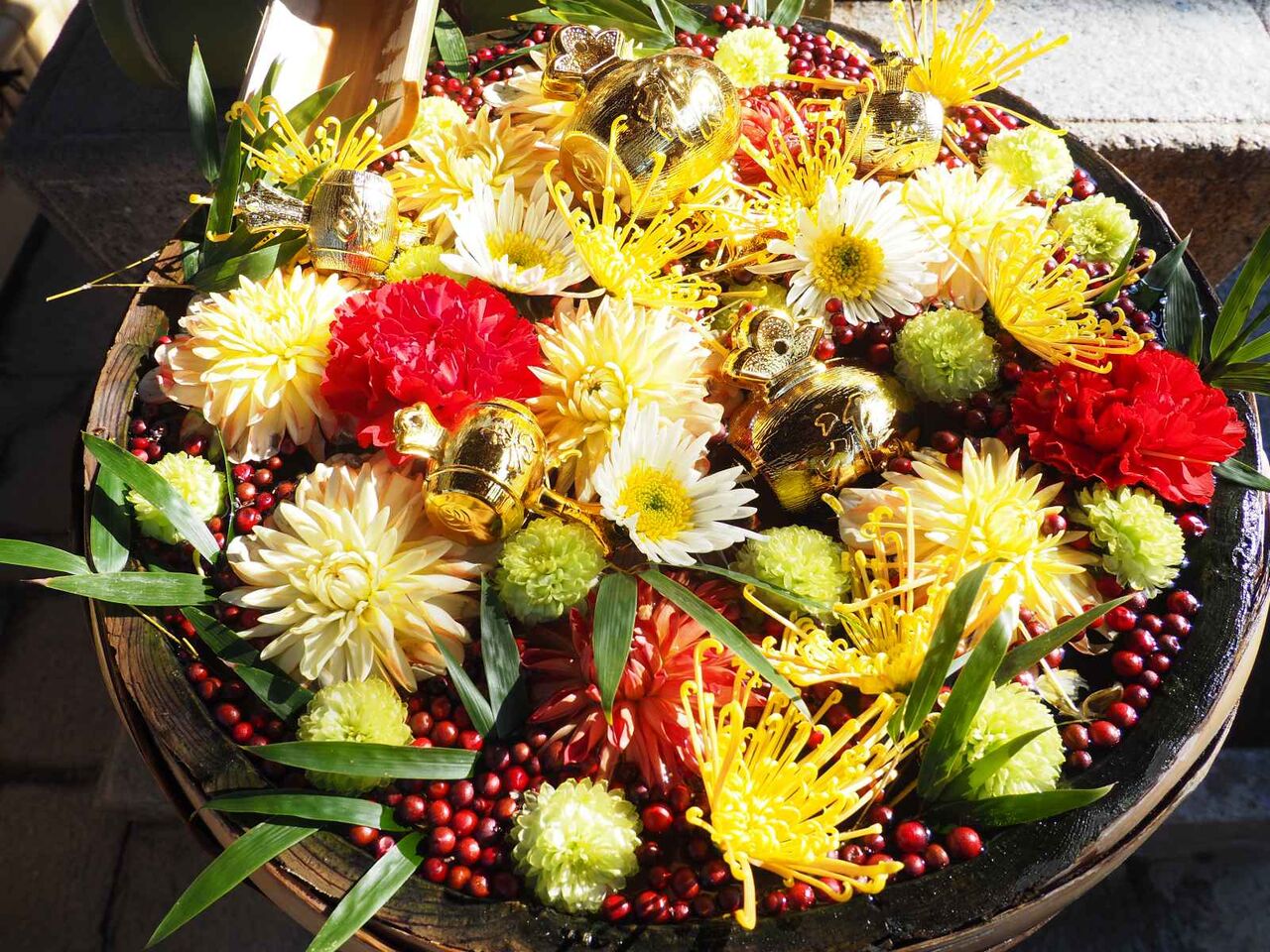 今回は菊を基調とした花手水のようです