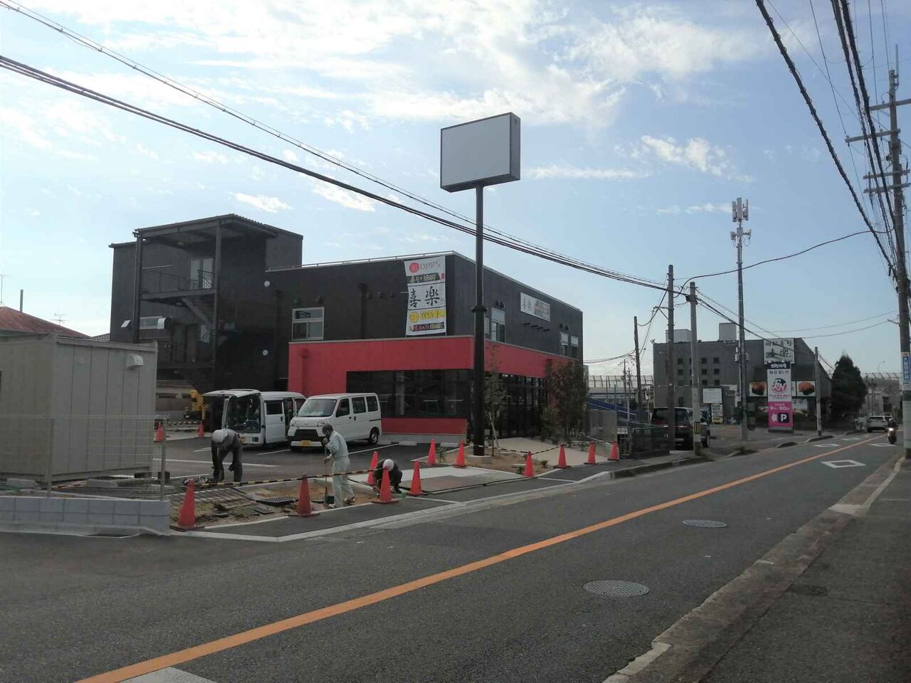 お店の建物にようやく看板が取り付けられたようです。(右手奥が以前の店舗)
