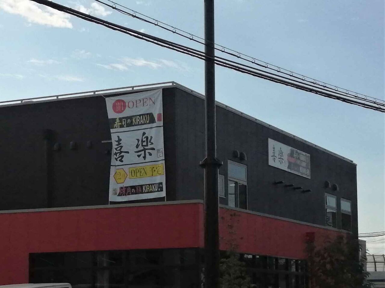 大蔵司3丁目 寿司のKIRAKU喜楽のお店に大きな看板ができて雰囲気が少しかわりました。