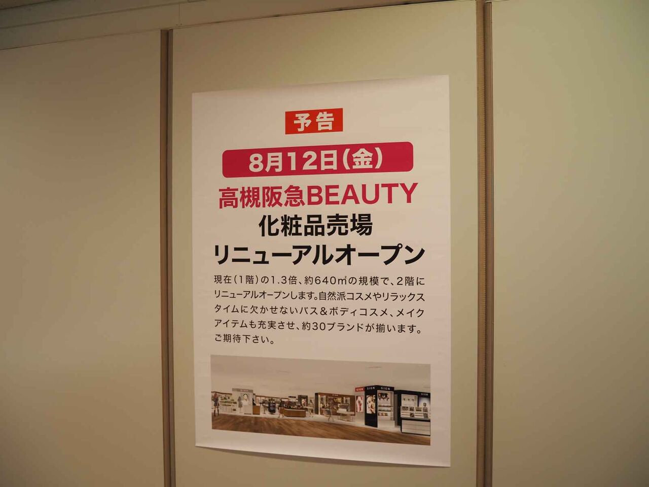 8月12日に1階化粧品売り場がリニューアルされるようです。
