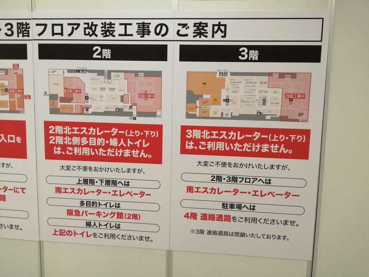 高槻阪急が、内装工事をされていますね。6月に3階の北側にビッグカメラが、2階と1階は秋にリニューアルの予定のようです。