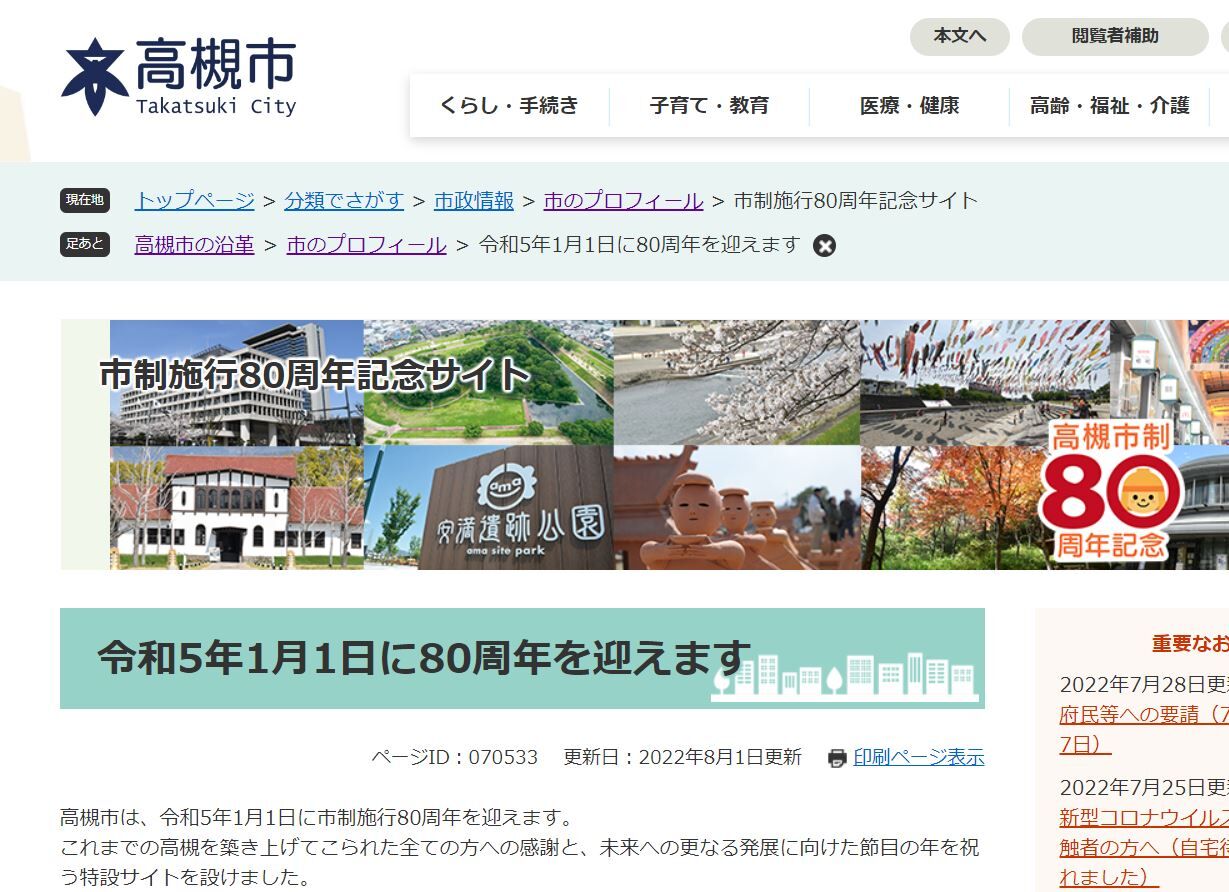 6月に決定した80周年の記念ロゴです。戦中の昭和18年に高槻市になったんですね。ブログでも歴史をちょこちょこ載せていますが、昭和の成長期の高槻の歴史はあまり知られていません。知らない高槻の歴史が出てきたらまた紹介したいと思います。