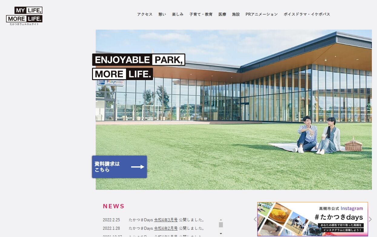 たかつきに住もうに行くとこのようなかんじ。いずれの場所も見やすい画面になっていますね。写真も多くてとてもシンプルな感じです。市民の皆さんもとても使いやすいかんじではないでしょうか。
