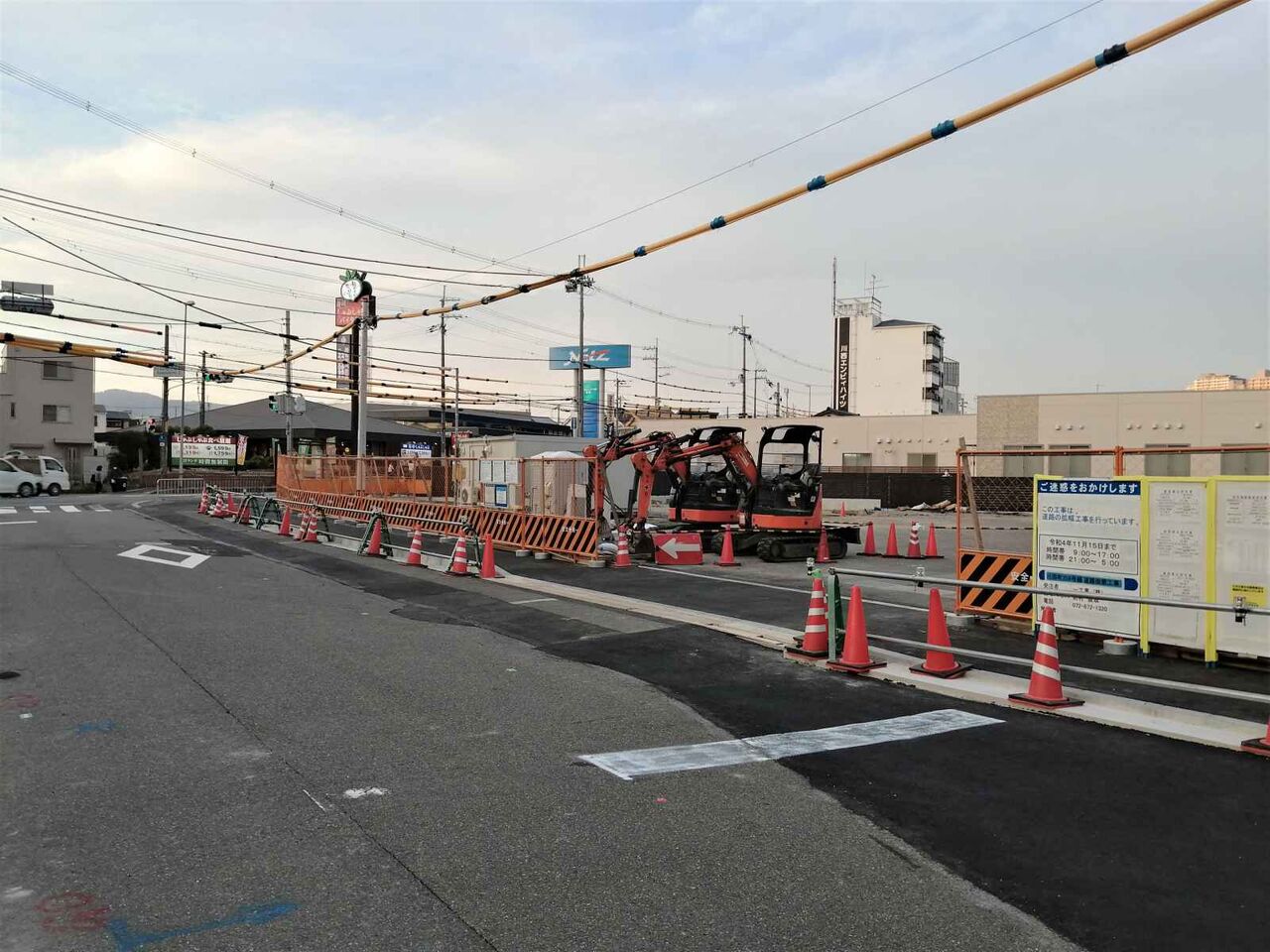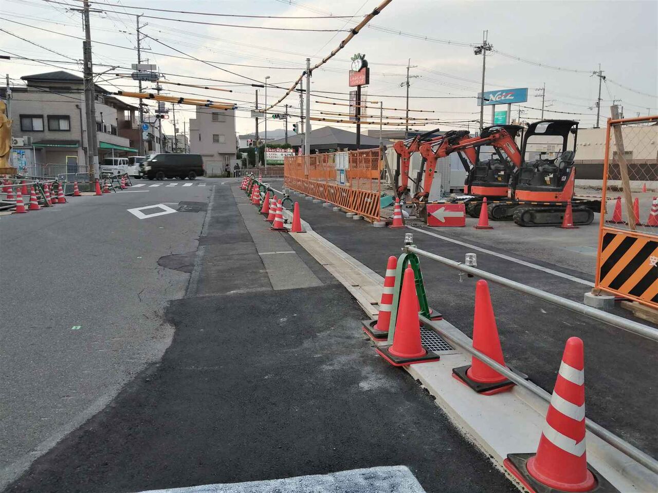関西将棋会館移転と、JR高槻駅西口近くの市バス停留所の移転に伴い、市バスのバス停留所が工事をされていましたが、いよいよ完成に近くなっています。(10月9日時点)