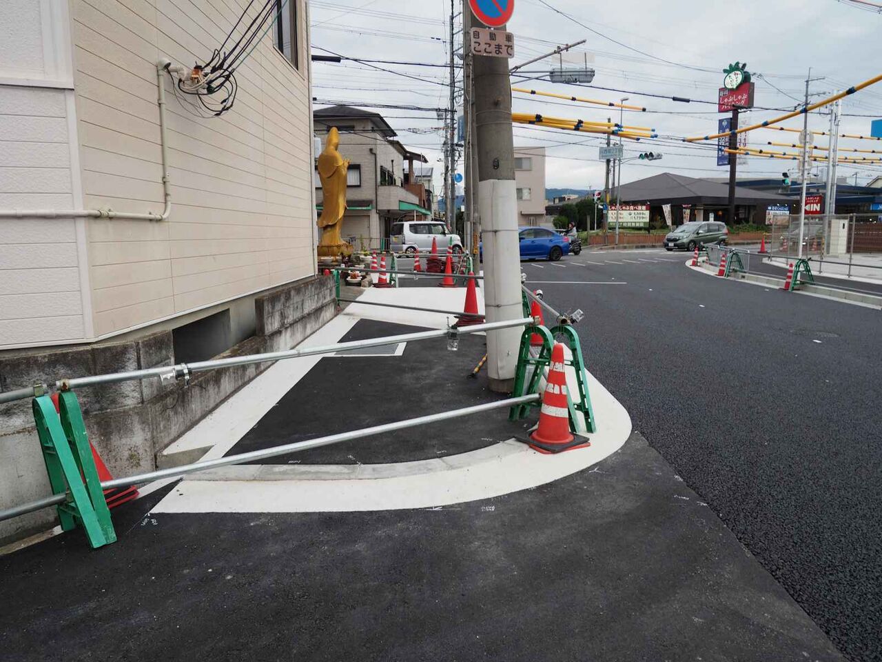 仏壇店の横の国道沿いも歩道がしっかりと作られています。