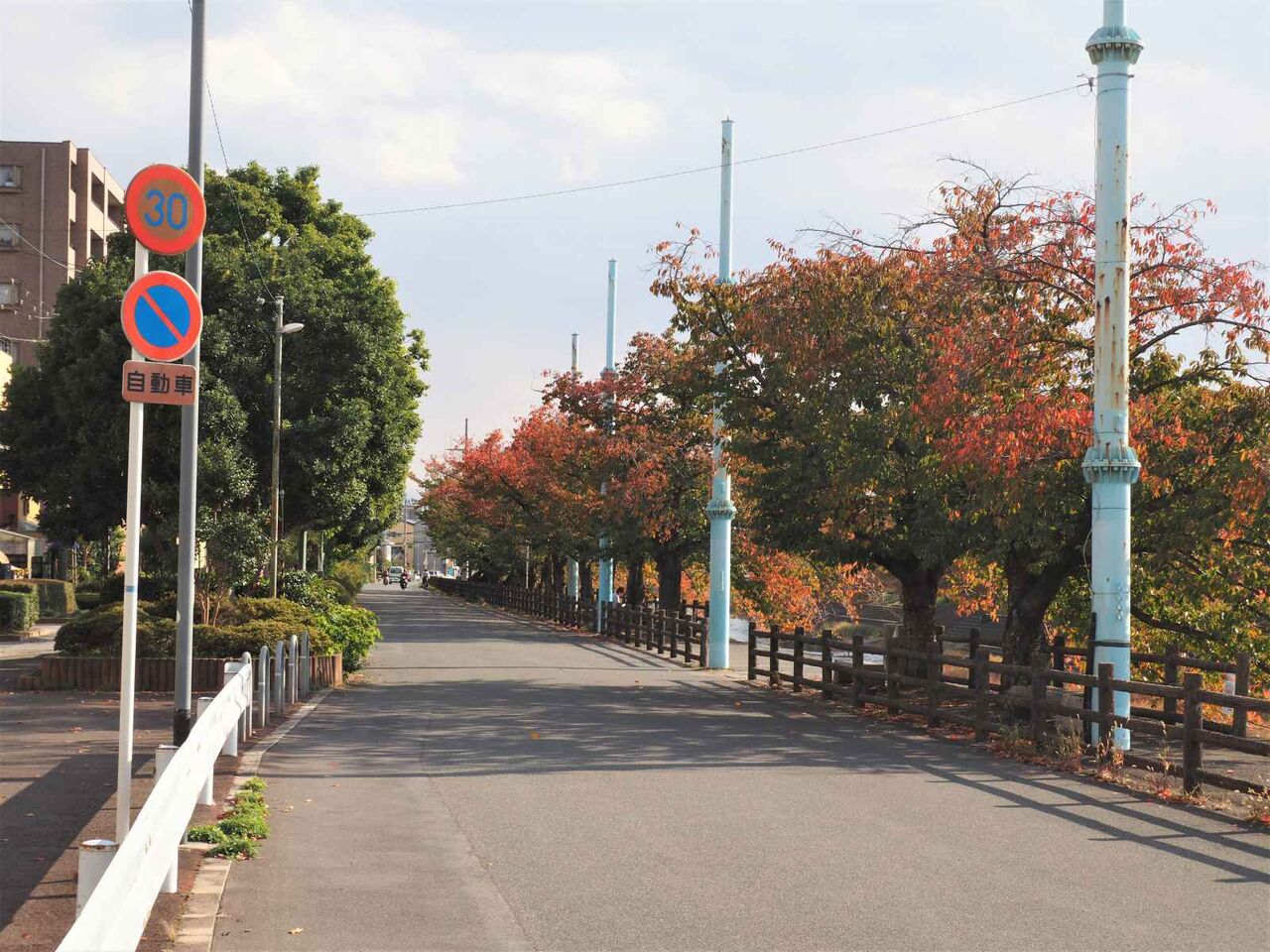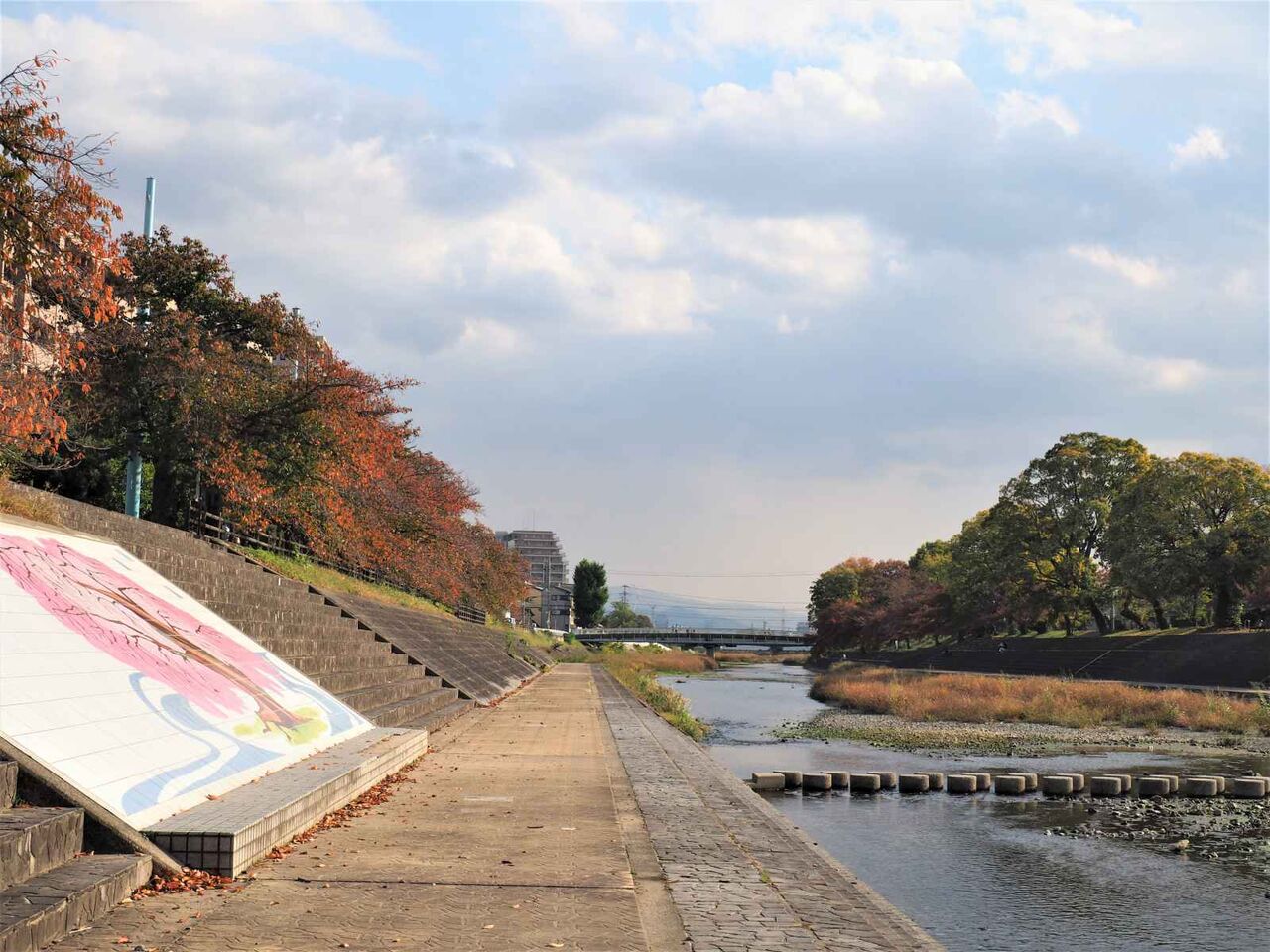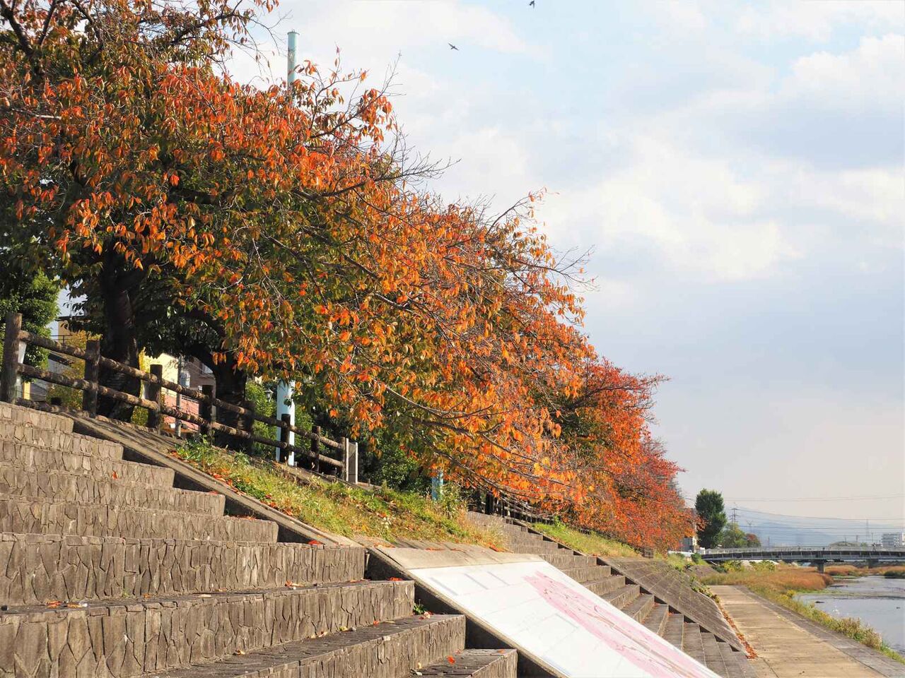 芥川の桜堤も紅葉しています。