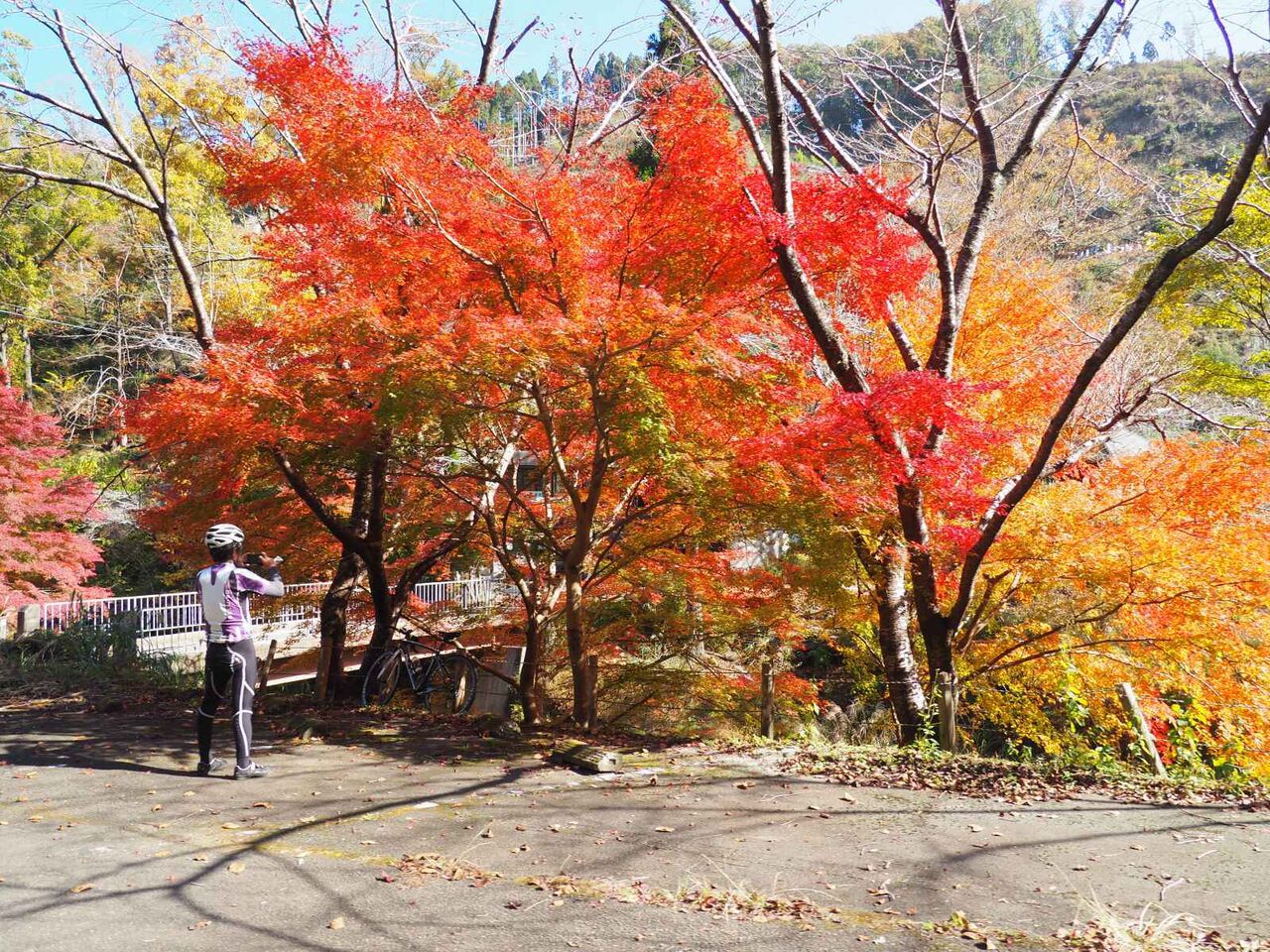 こちらの桜は落葉しかかっていて、左手の大きなケヤキは紅葉はこれからのようでした。