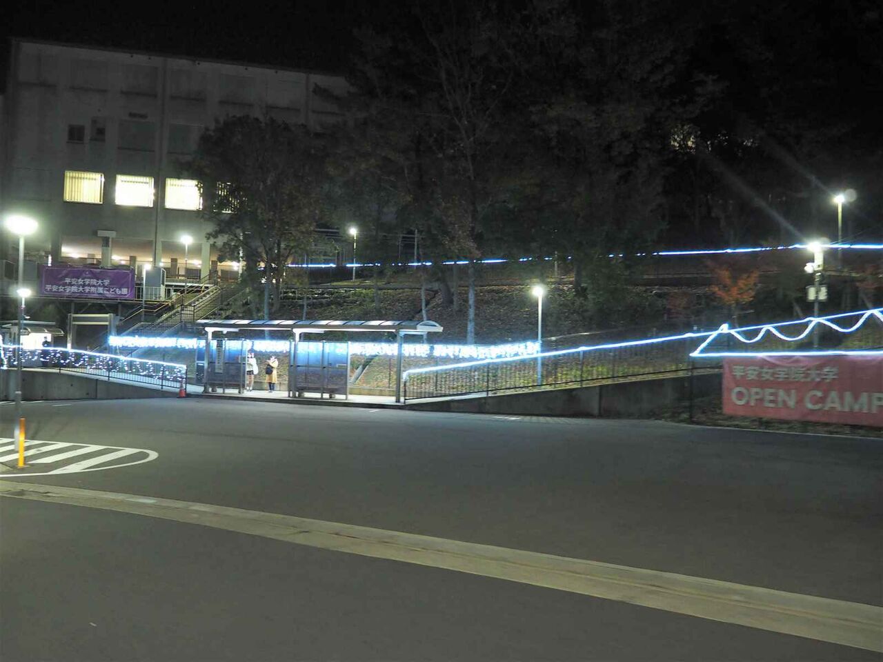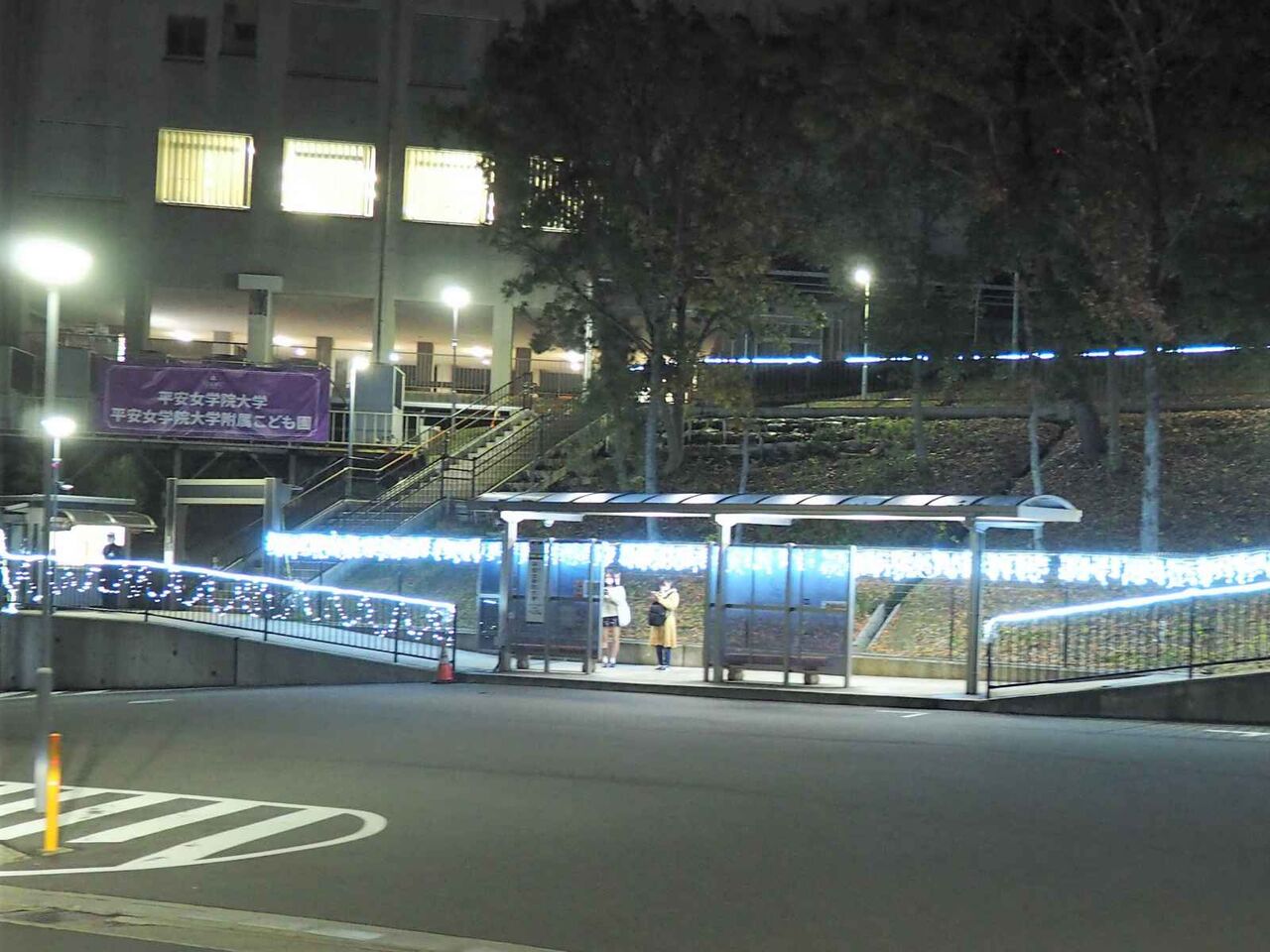 平安女子学院大学バス停前ですが、イルミネーションのようすです。