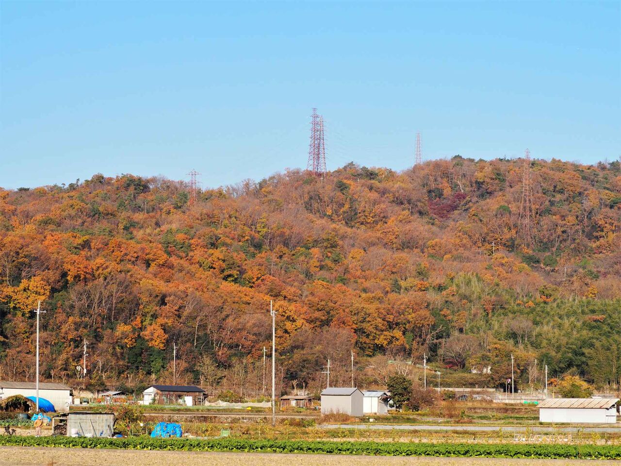 高槻の紅葉としまして、今年最後のようすです。場所は摂津峡と芥川山城のある三好山方面が見える塚脇からです(2022年12月10日朝)