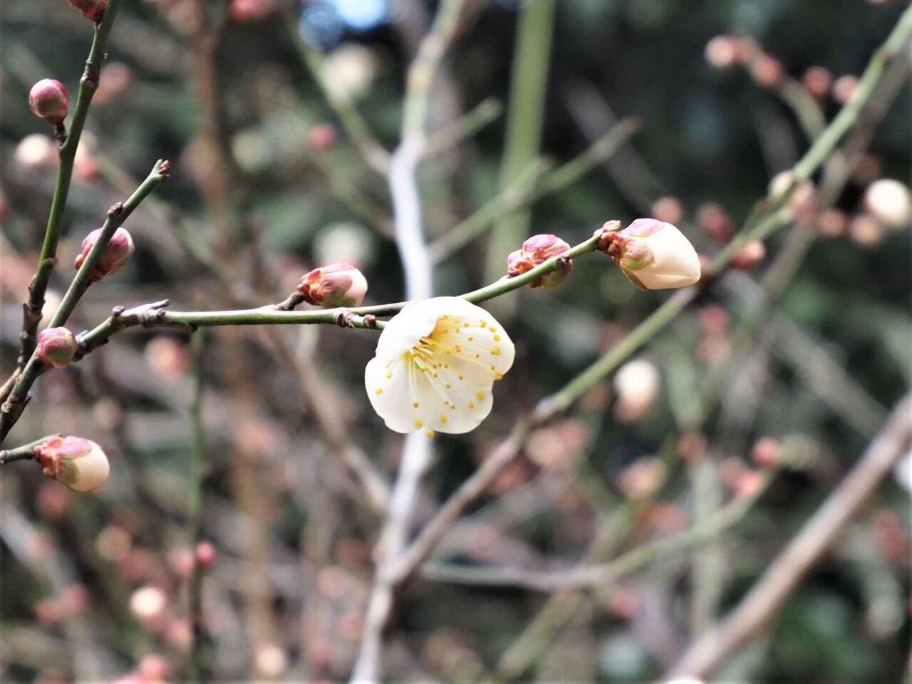 しだれの梅などは、まだつぼみのようです。