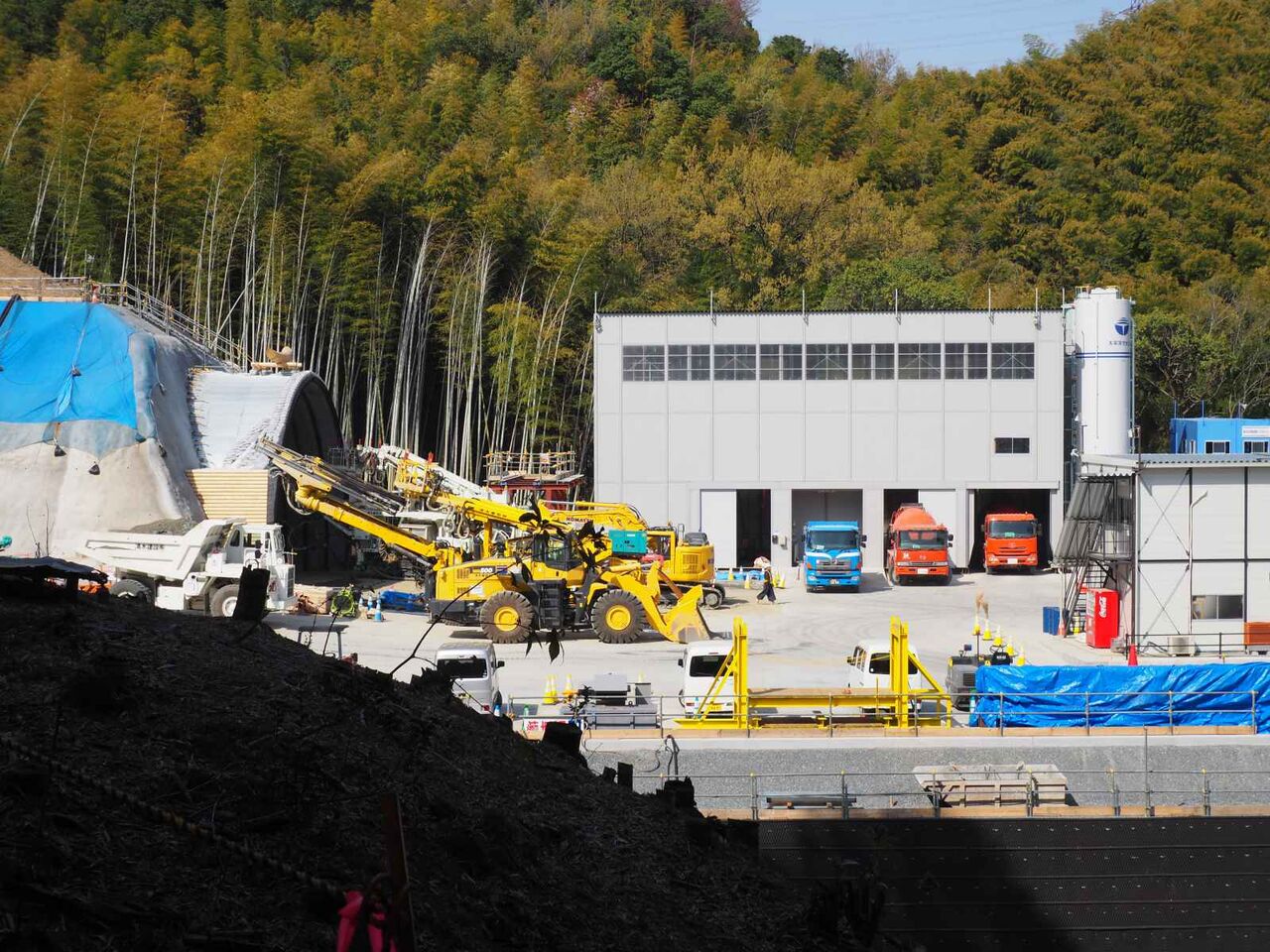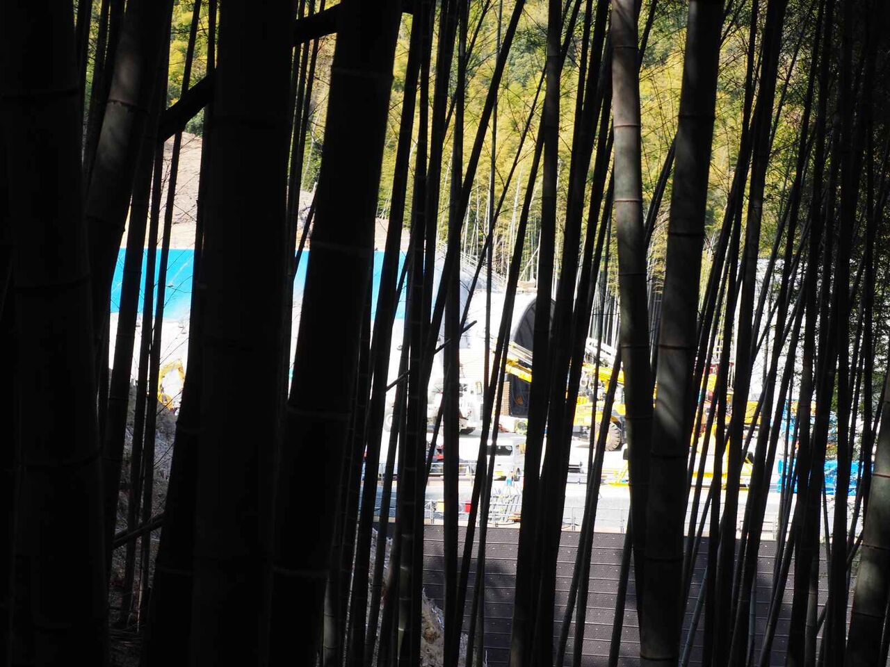竹林の隙間からトンネル工事の坑口の「穴」が見えてきました。