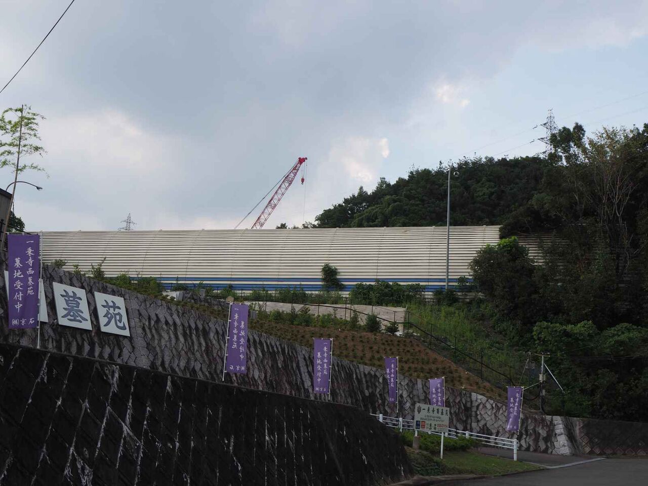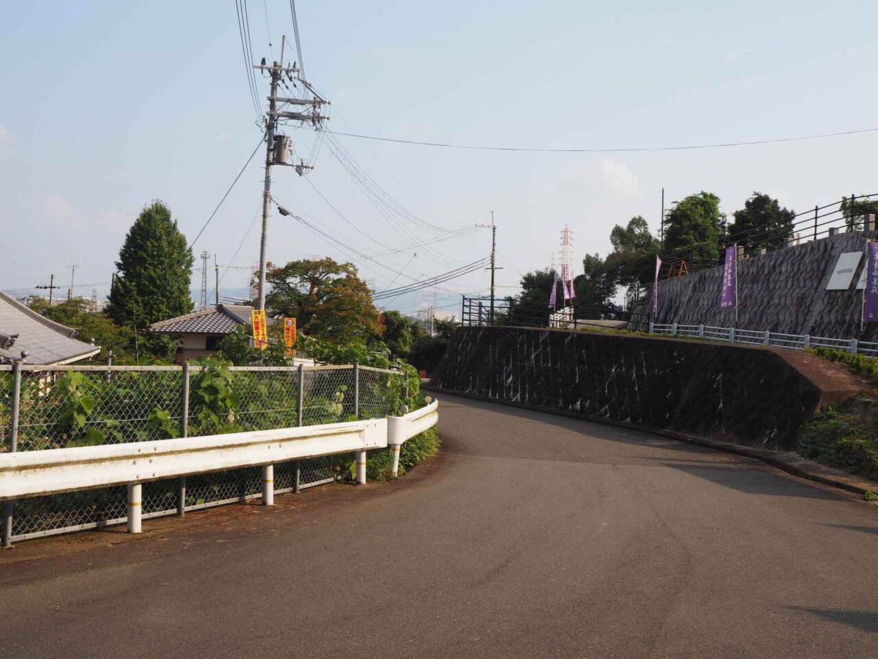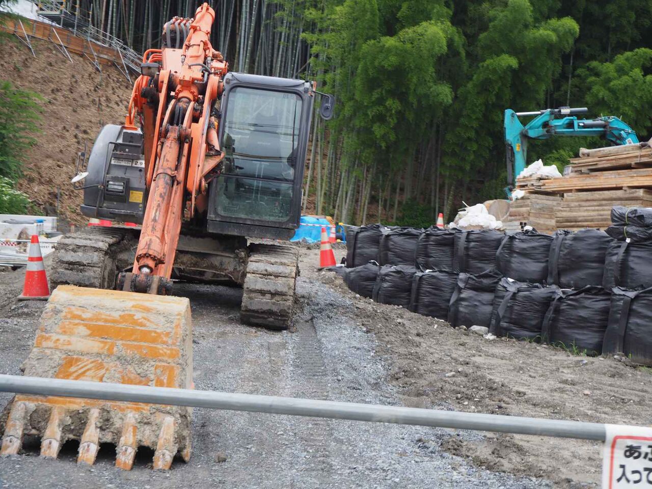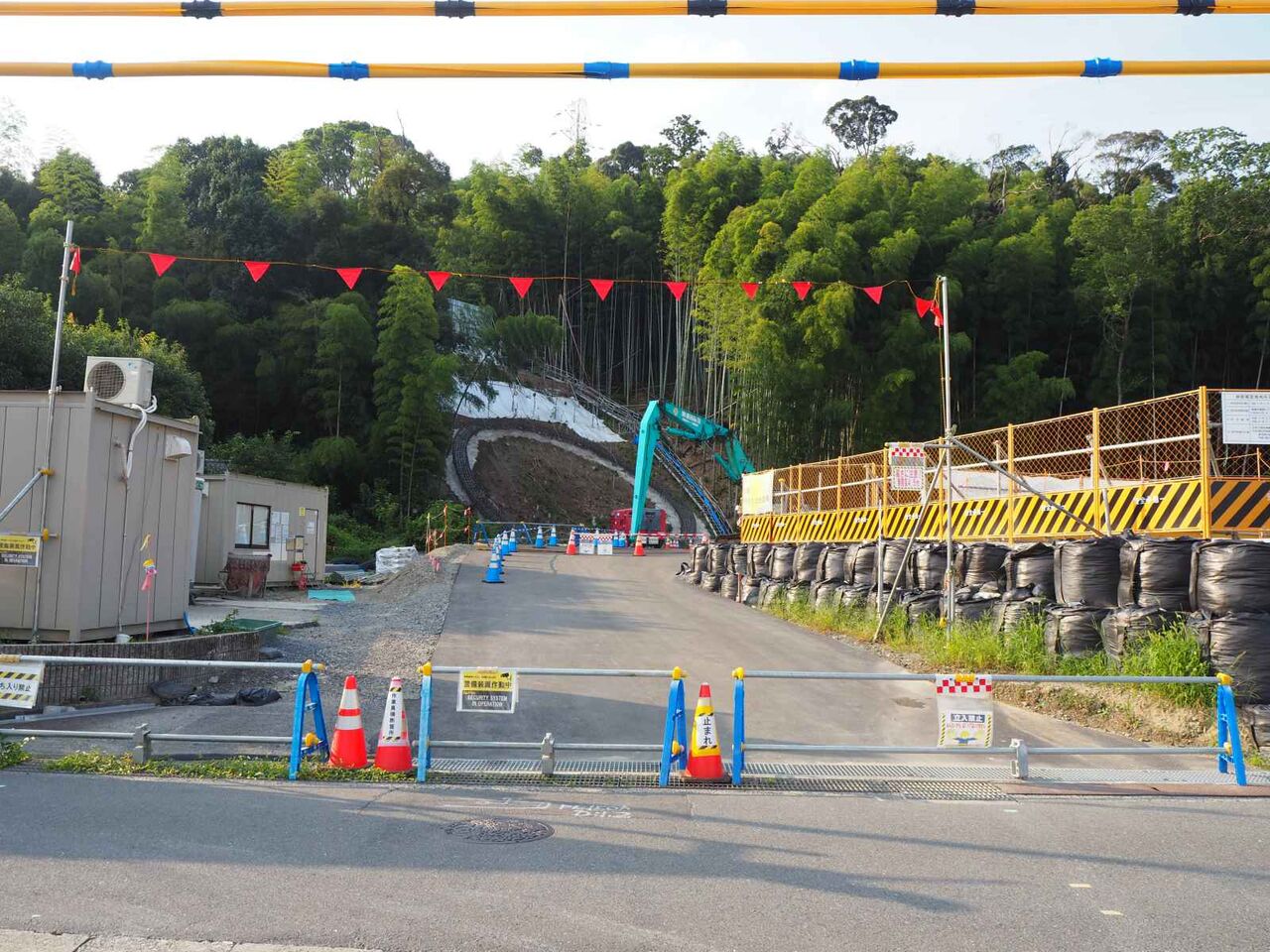 アプローチは農道ながら急な坂です。約10分ほど歩いて工事現場が見えるところに行ってみます。