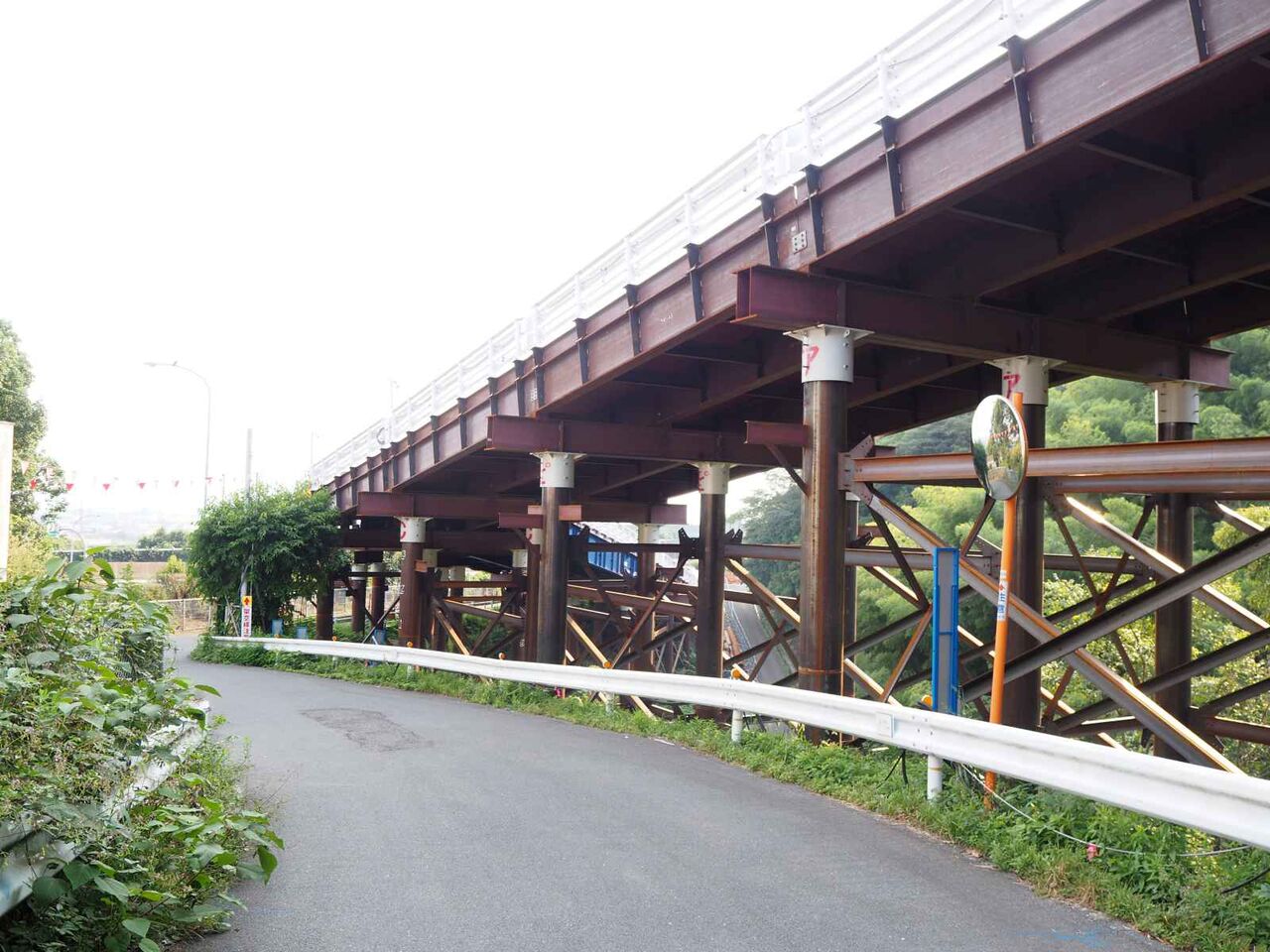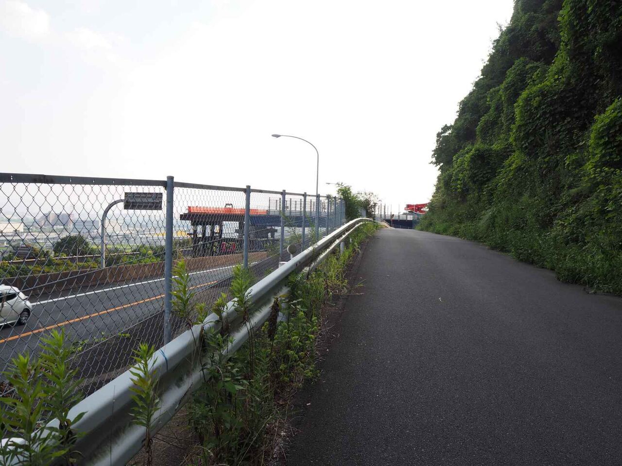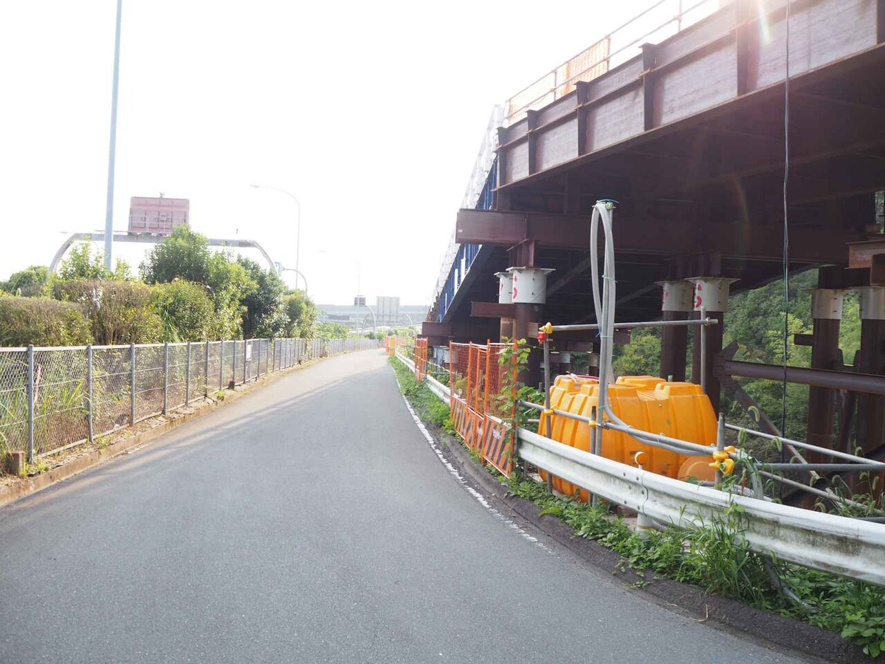 するとこの道路は名神高速の側道になっていて、その先に大きな桟橋が見えてきました。