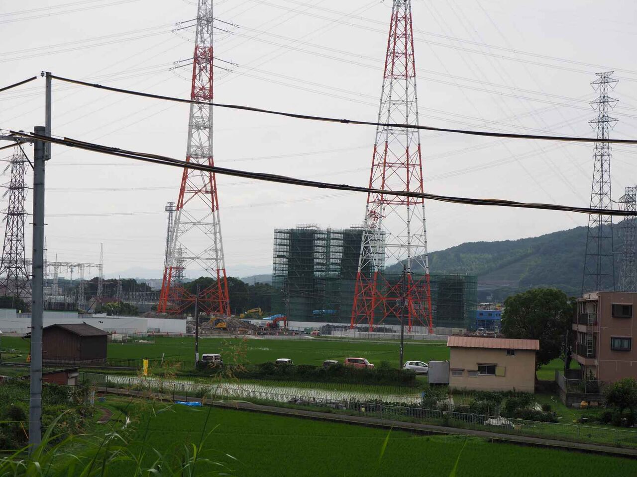 国道付近では、このような送電線も付け替えられているようです。淀川橋本線近くの国道南側、