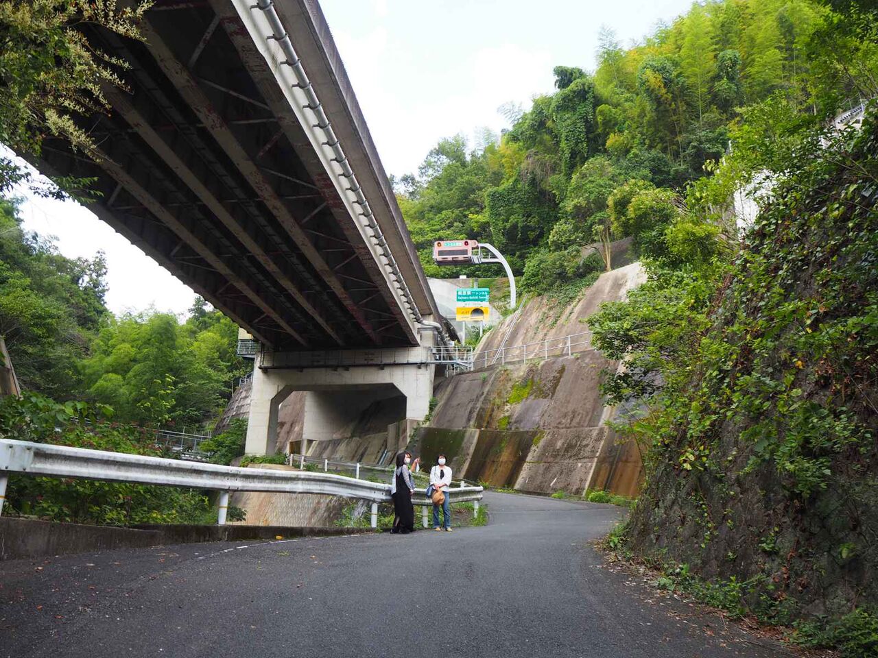 すると墓地の奥に名神高速道路がちょうどトンネルに入るために車線が増えている場所の下を通ることができます。