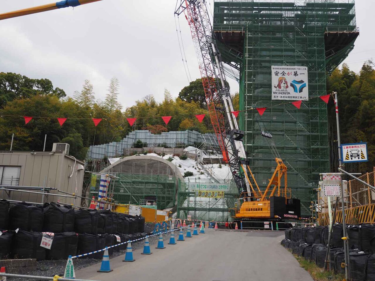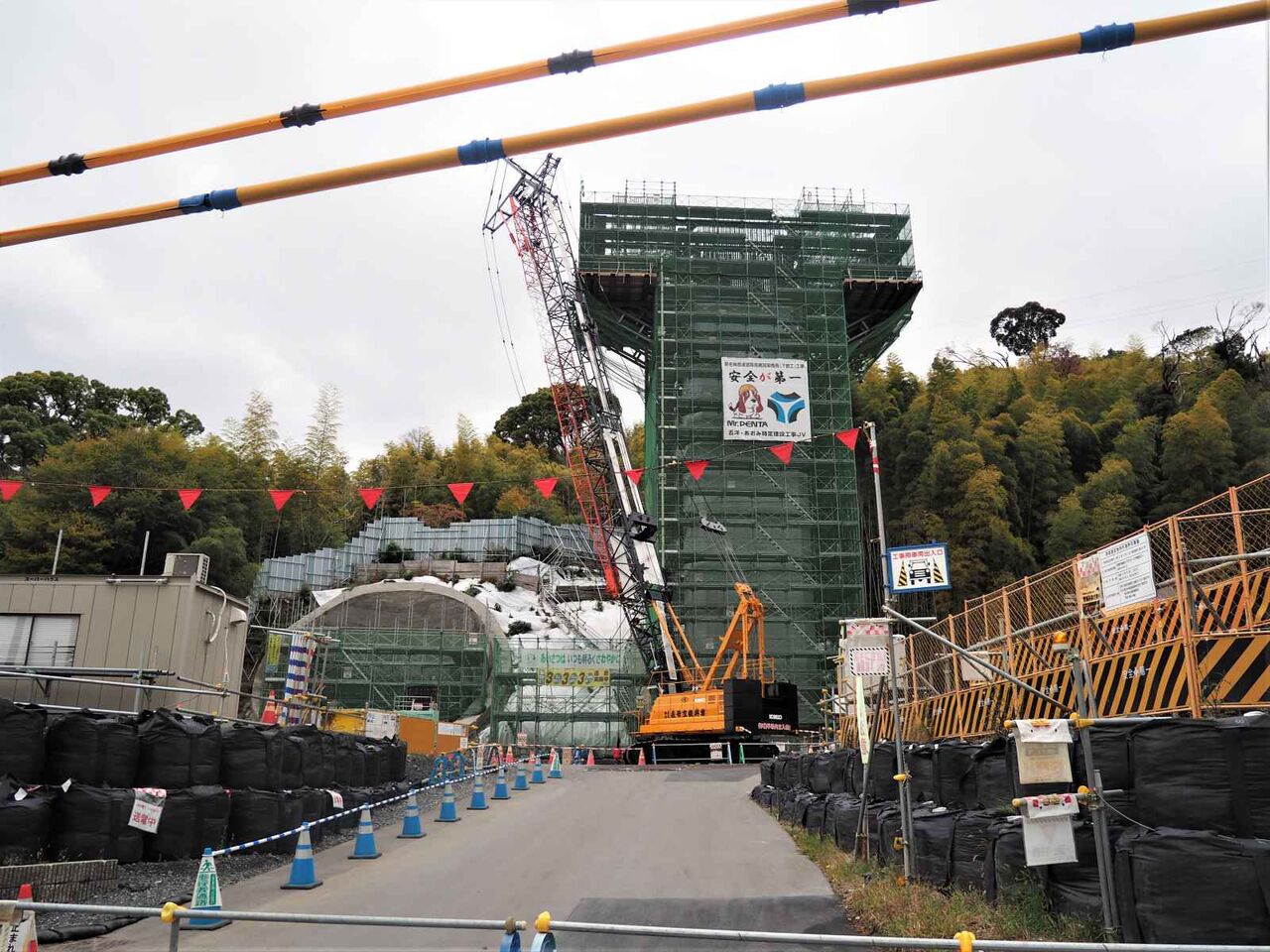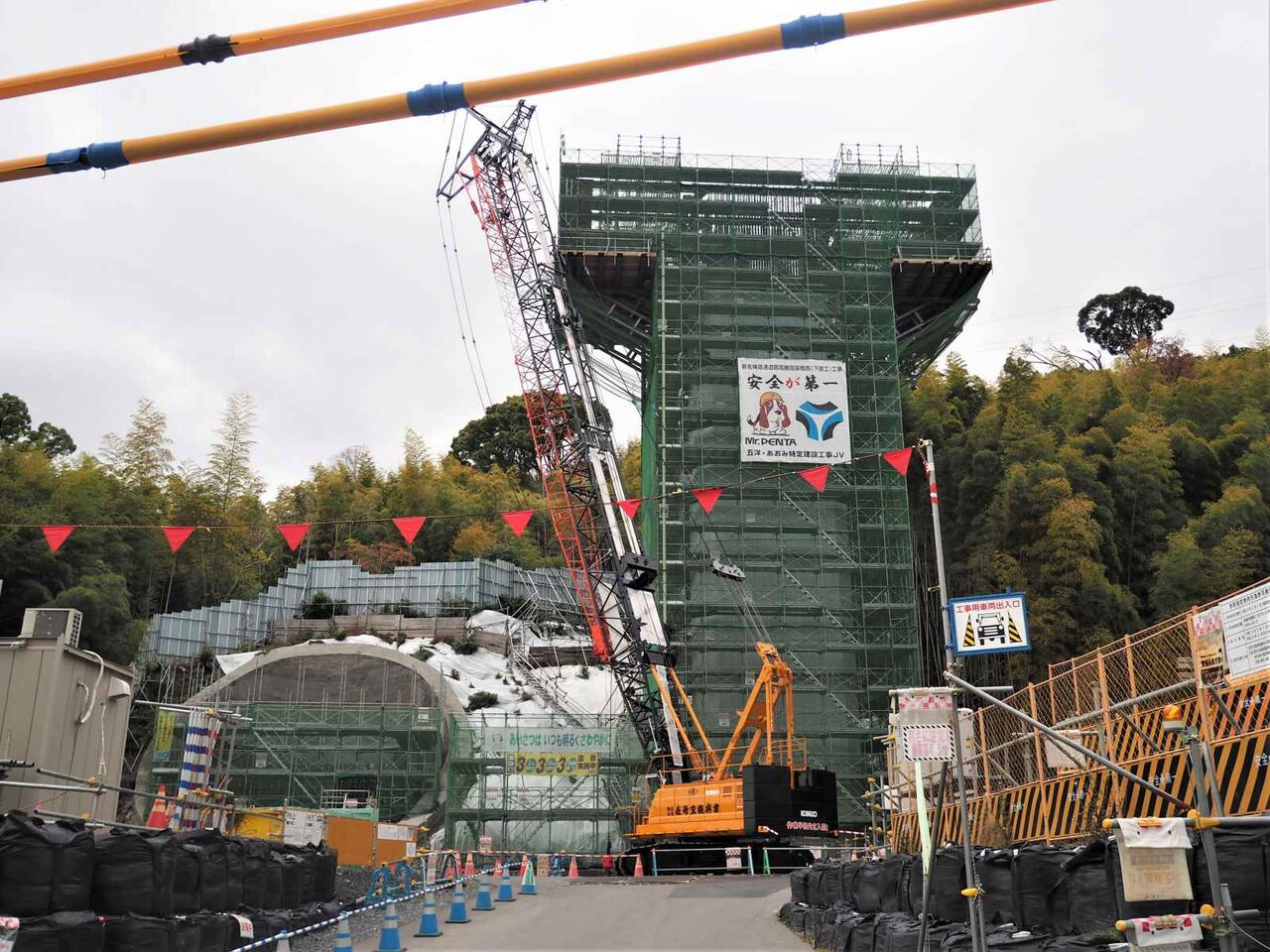 ▶新名神淀川橋の工事 国道171号線沿いの橋脚 成合の(仮)梶原トンネル北側の桟橋 2022年5月