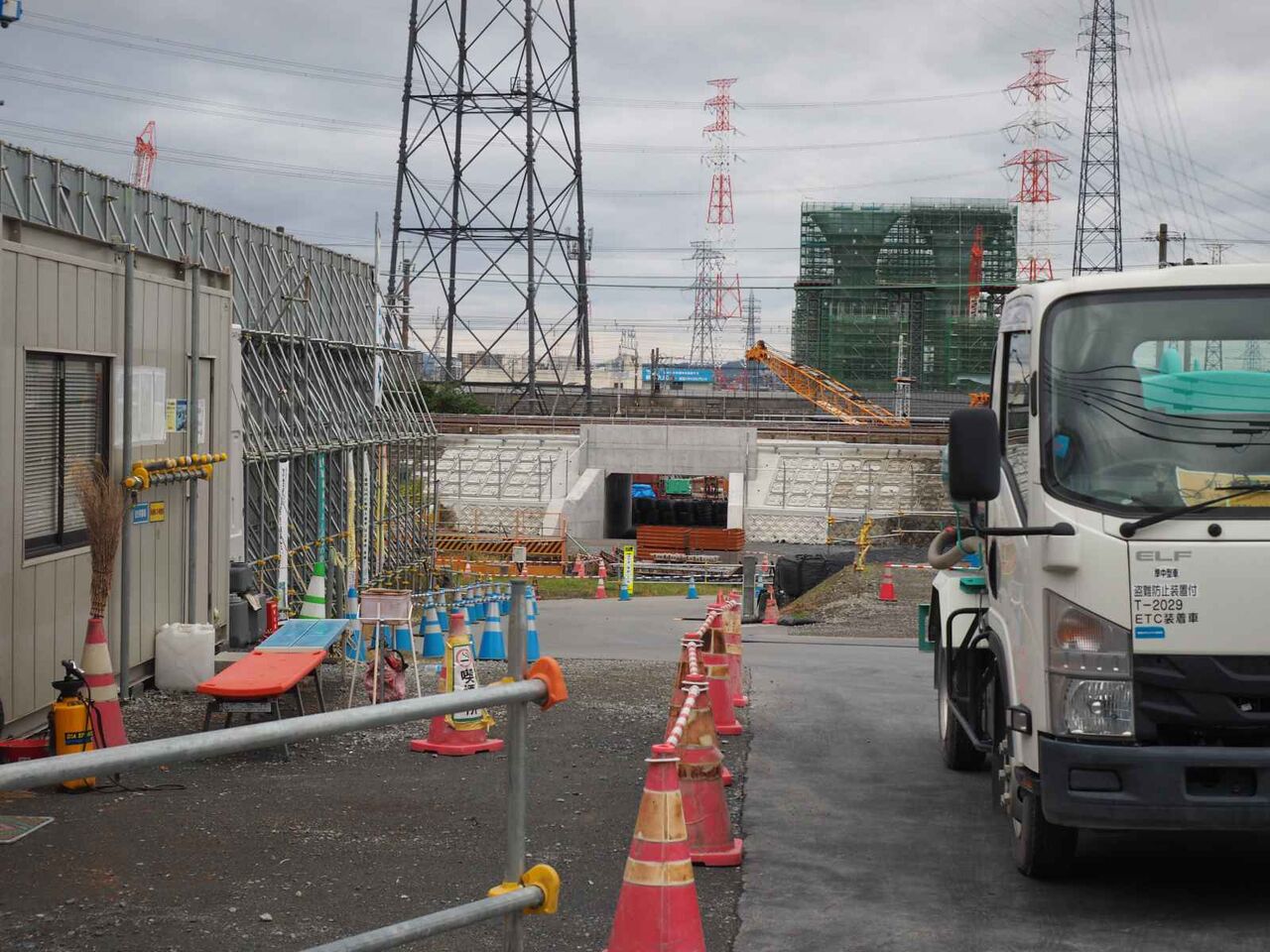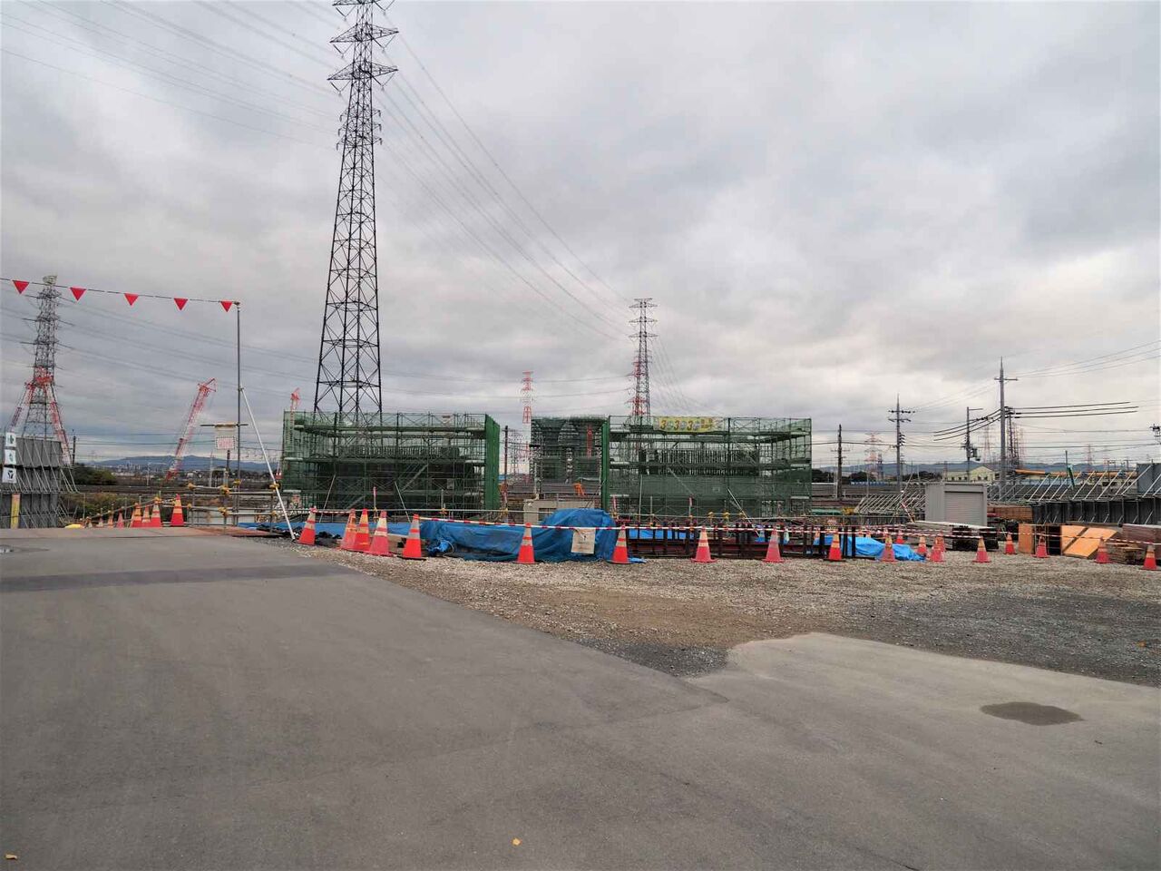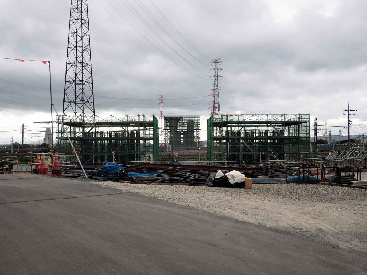 前回から比較しますと、右側が橋梁を受ける部分が進んでいます。左側の橋脚が始まってきました。