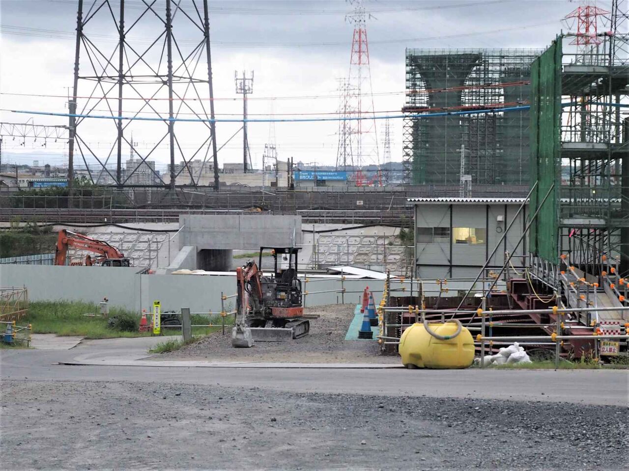 ▶新名神淀川橋工事 上牧付近の橋脚工事近くのようす 2022年8月