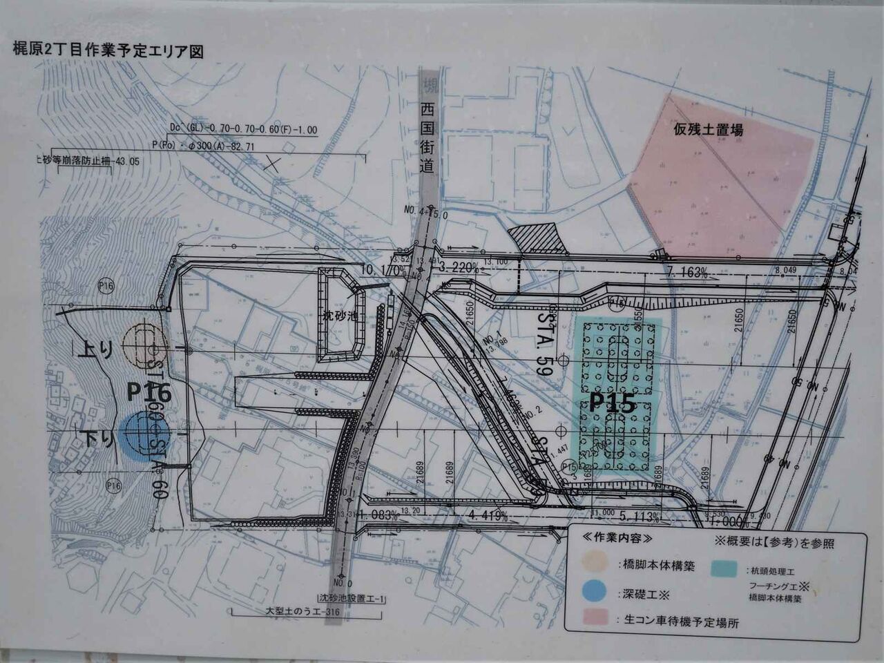 工事の予定をみますと西国街道沿いには4本の大きな橋脚ができるみたい。